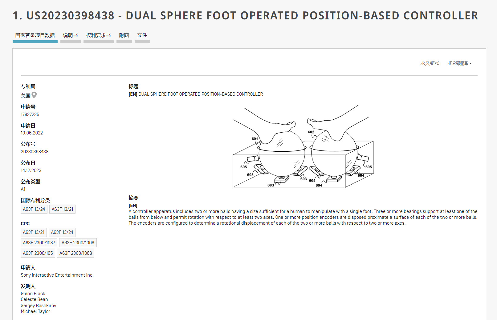 索尼在2022年6月就向美国当局申请了相关专利,直到2023年12月才对外公布。从简介中可以看出,这项专利设备将由双脚进行踩踏式位置控制,包括两个或者多个供人用单脚操纵的球体。