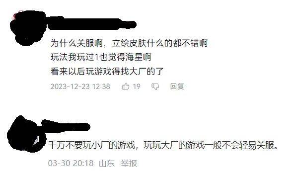 (随便在几个不同社交平台或不同游戏的停服通告下都能找到类似的发言)