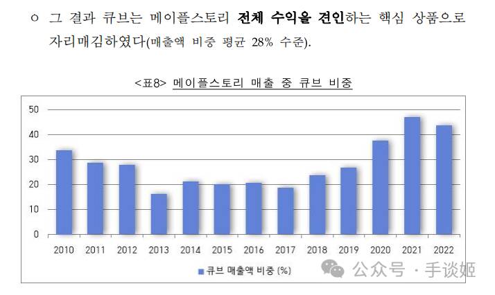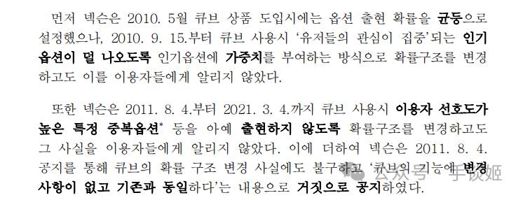KFTC称,《冒险岛》是MMORPG,用户们只能进行能力值(spec)的竞争,从用户的立场来看,为了快速提高装备能力,购买魔方是必须的,甚至有用户仅购买魔方一年就消费最多2.8亿韩元。最终结果便是魔方成为拉动《冒险岛》整体收益的核心商品(占销售额的28%)。