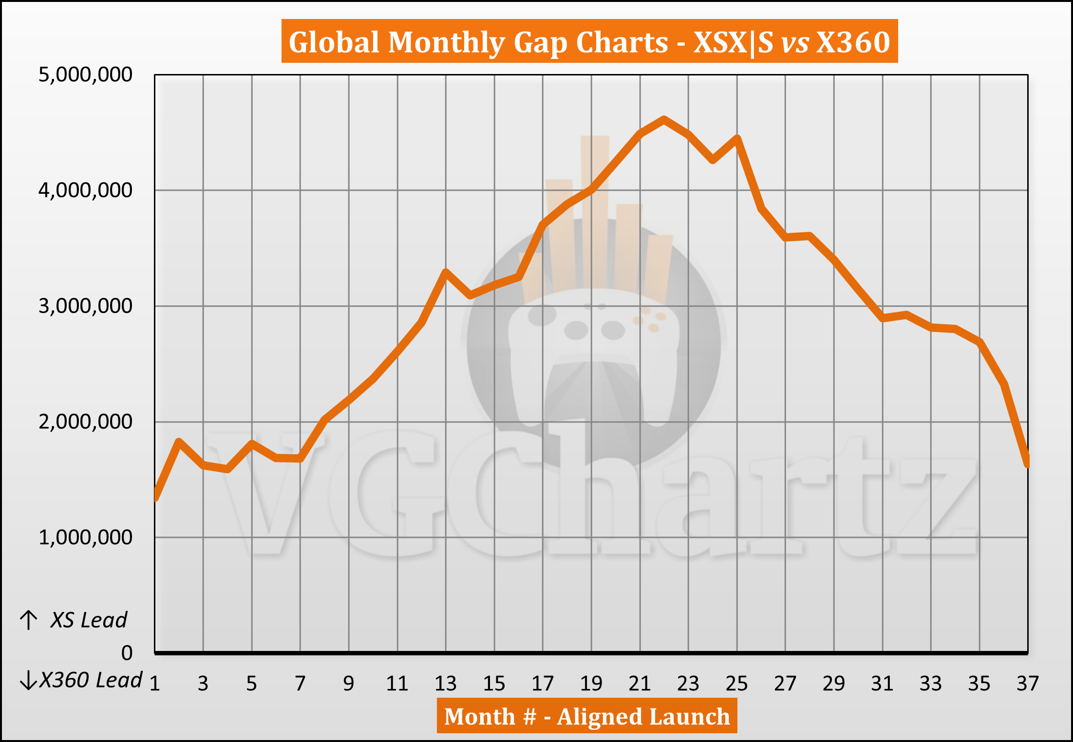 外媒VGChartz近日对Xbox Series X|S和Xbox 360生涯同期销量情况进行了对比。