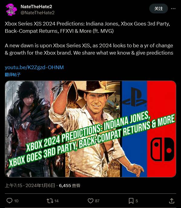 根据游戏个人媒体 Nate the Hate 在最新播客中的说法,一款“备受好评”的 Xbox 第一方游戏将会在 2024 年登陆“竞争对手”的平台。