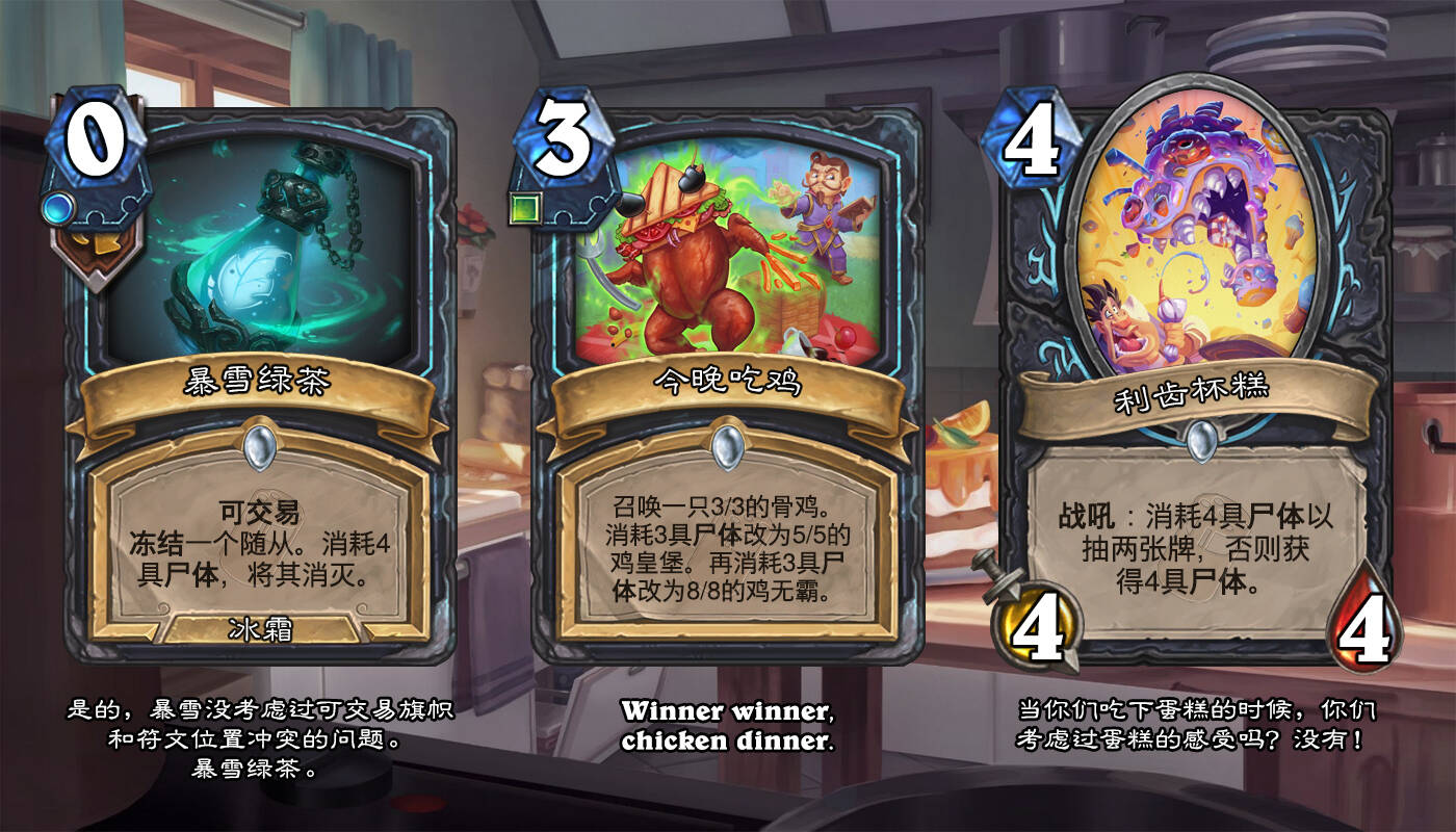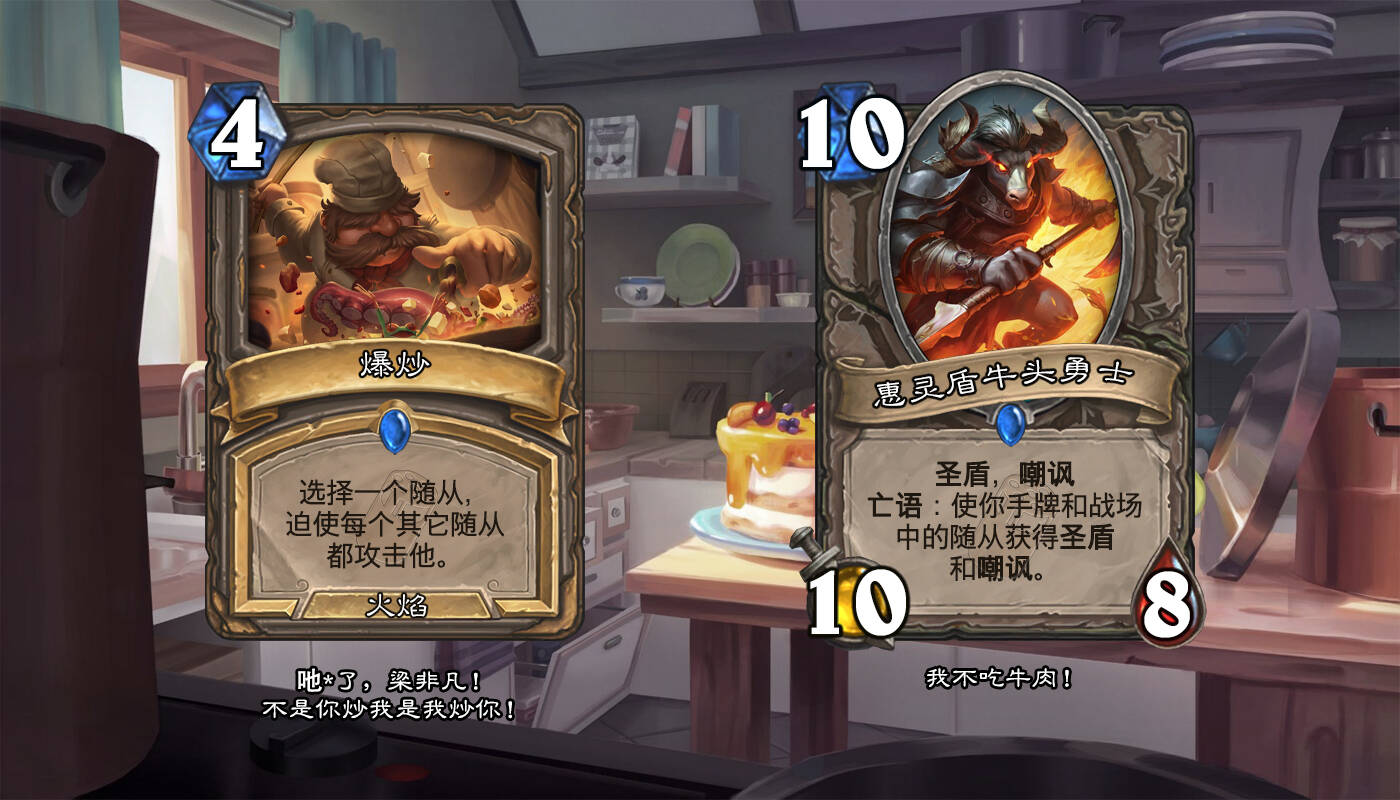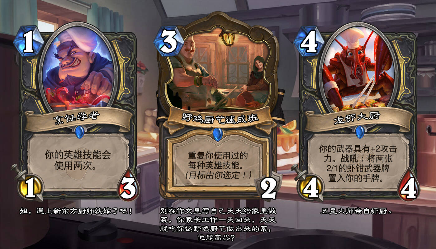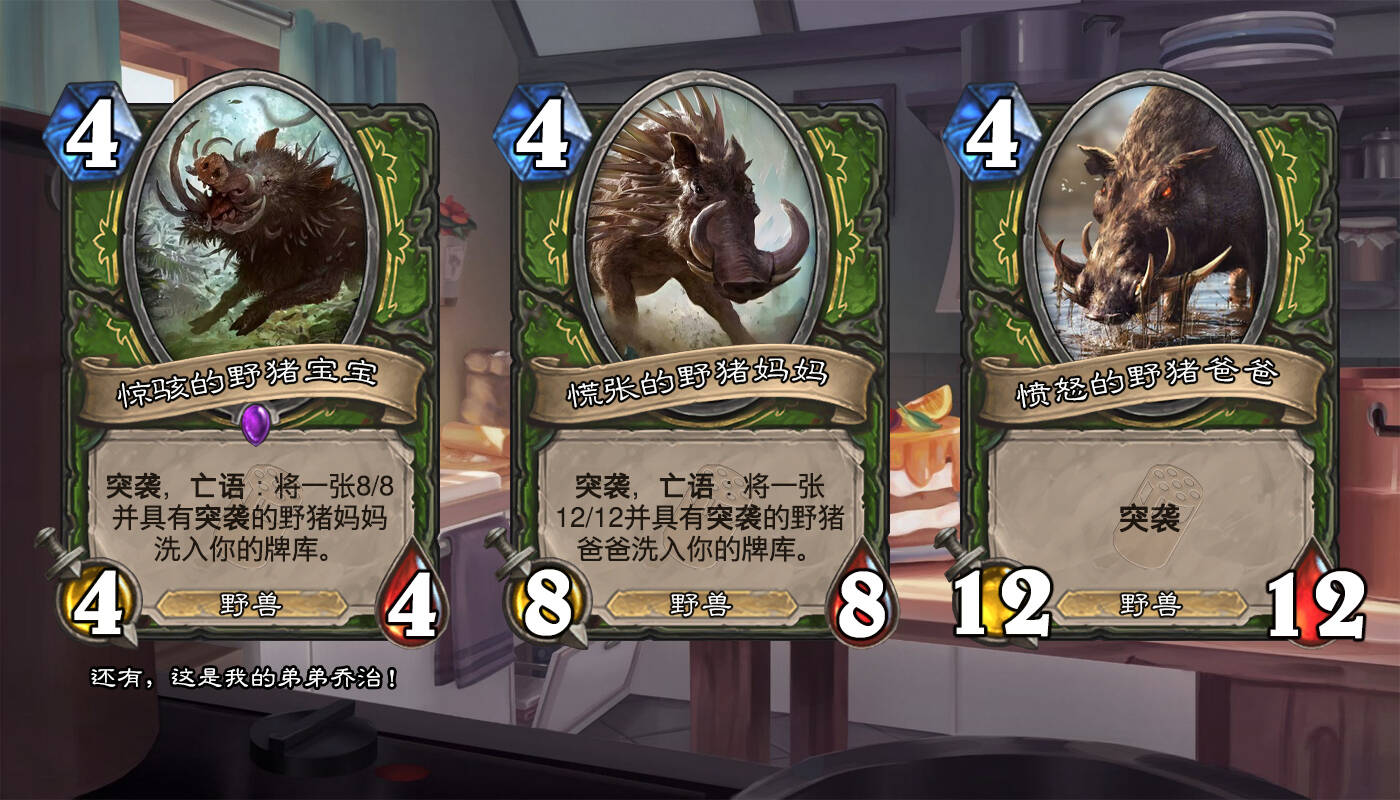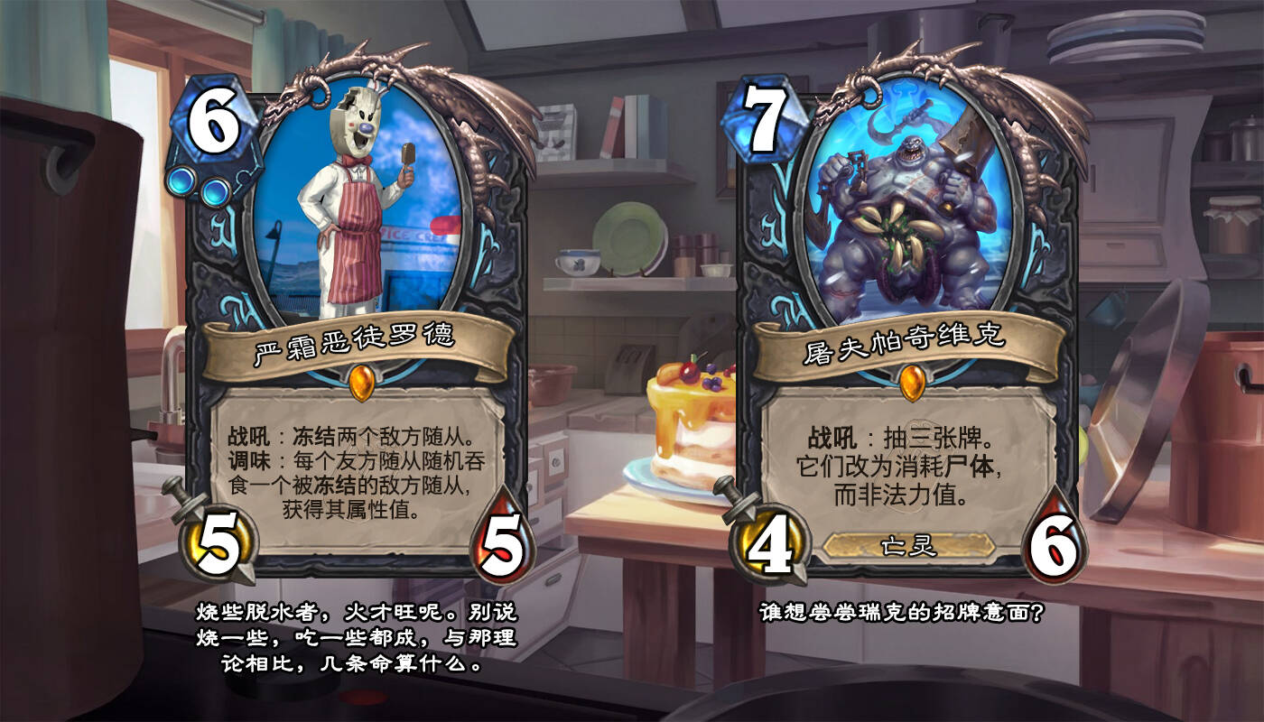 猎人可不愿意把自家心爱的野兽伙伴做成菜肴,所以他们选择烹饪这些套牌之外的狩猎所得。裹上面包糠炸至焦脆金黄,敌方英雄的生命值都要馋哭了!