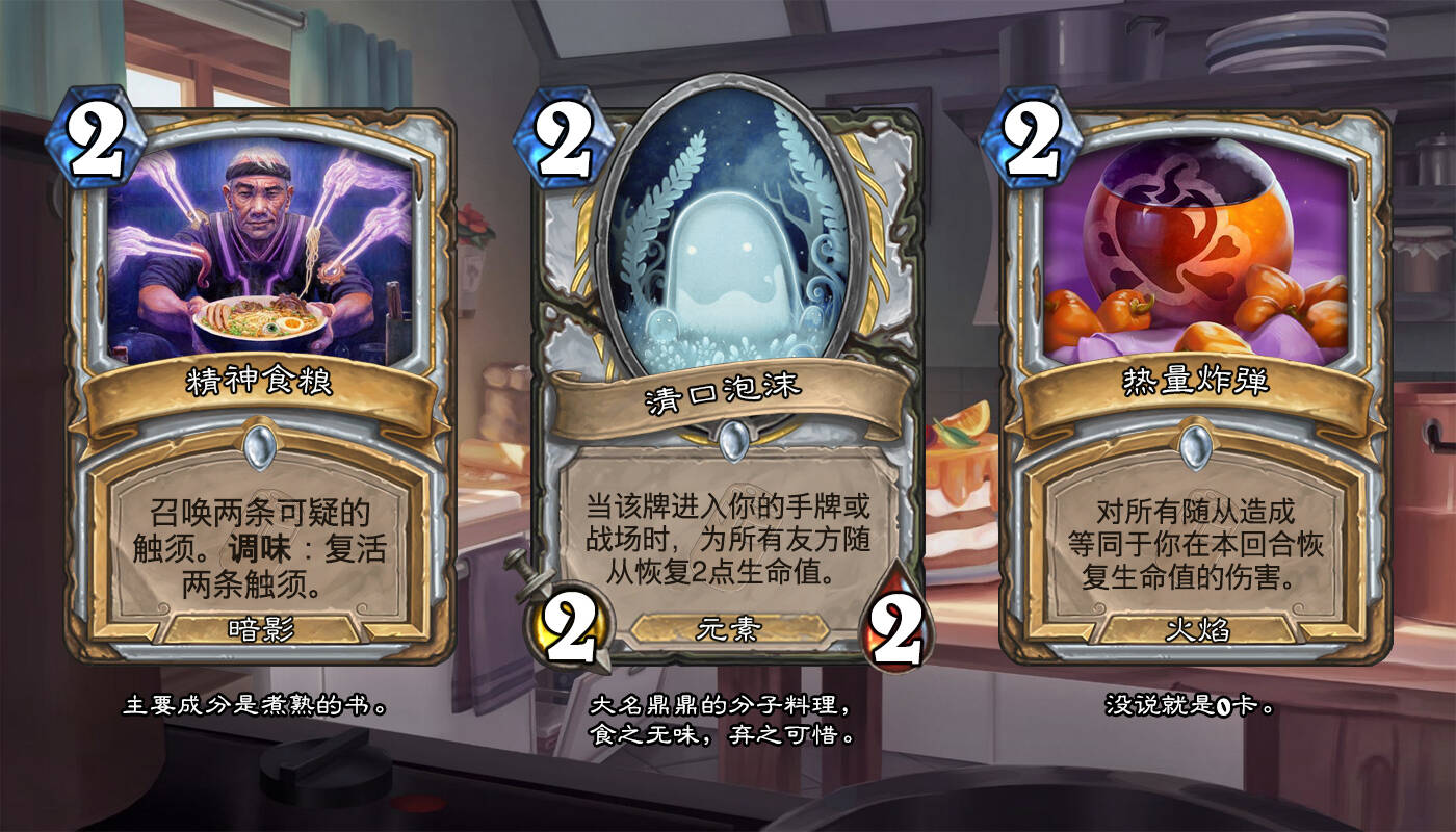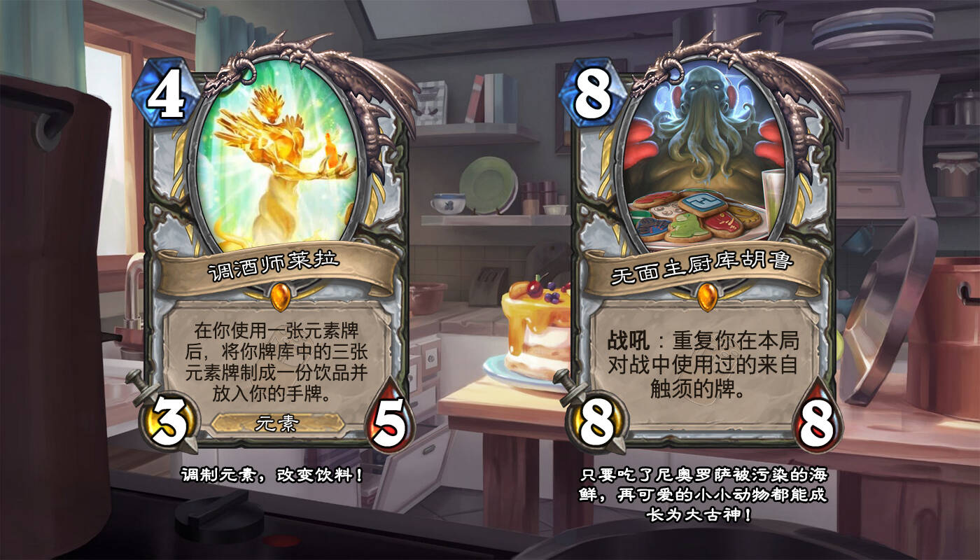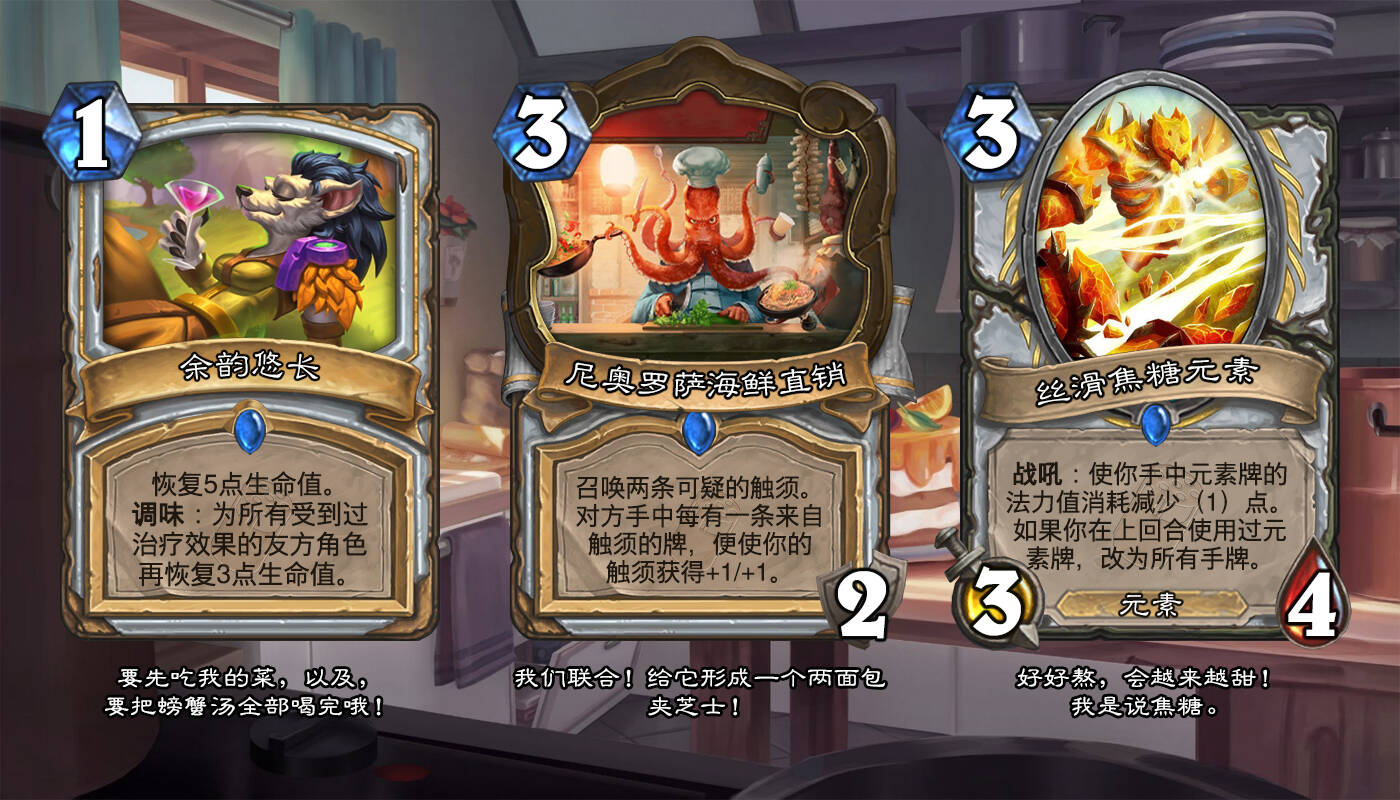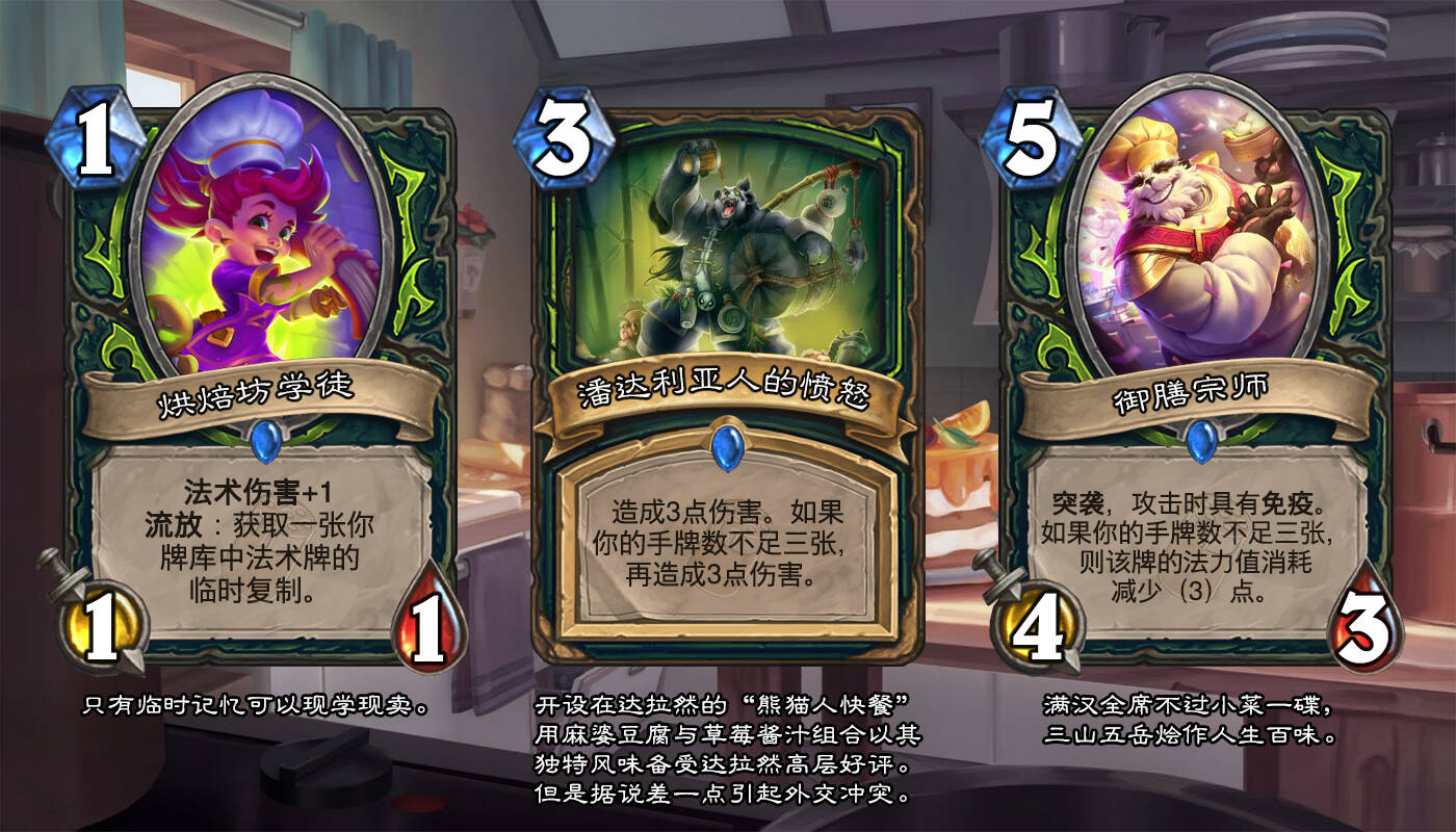 除去职业选手,来自艾泽拉斯各地各界的能人高手们也纷纷为这场美食盛会做足了准备。在他们的精心烹调下,我们将品尝到更多中立法术牌和中立地标,甚至包括一条中立的传说级任务线!
