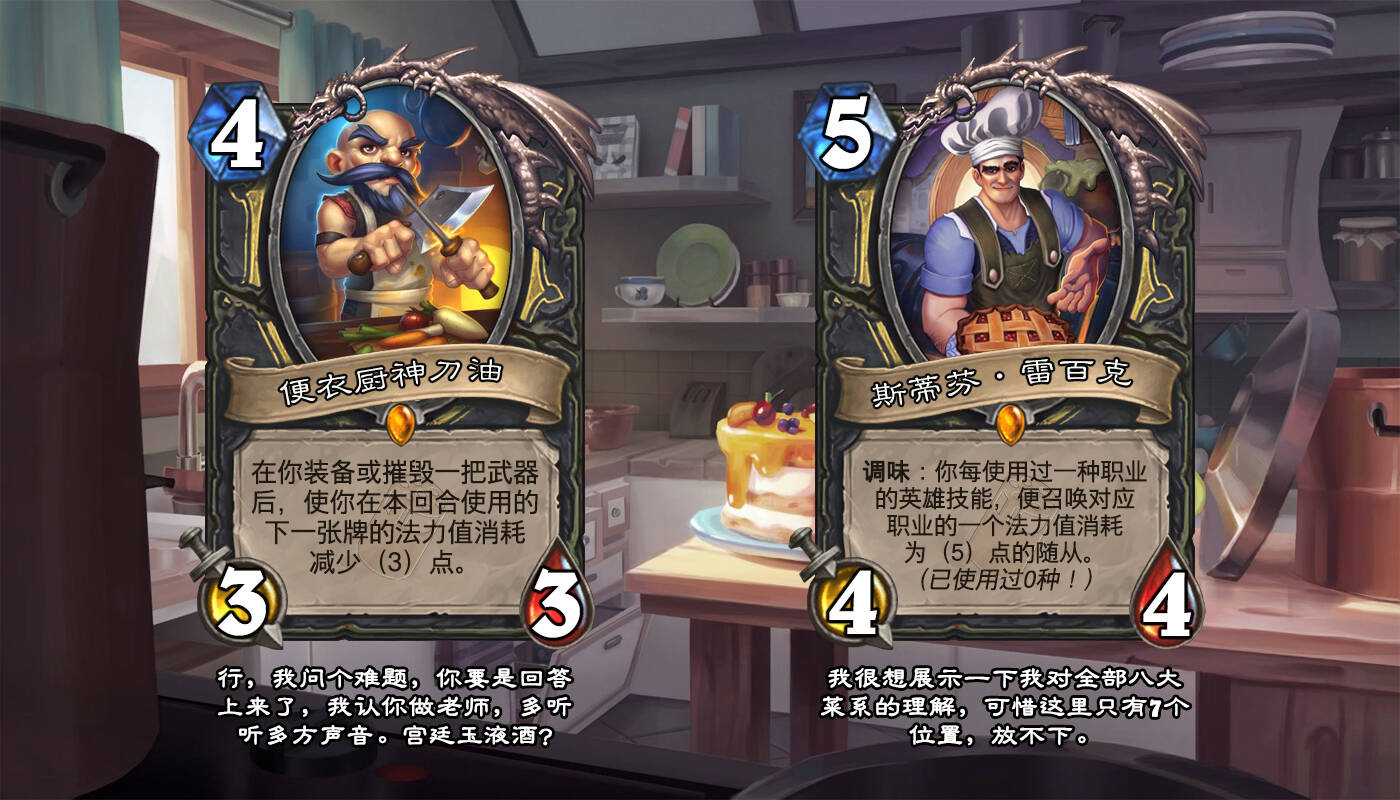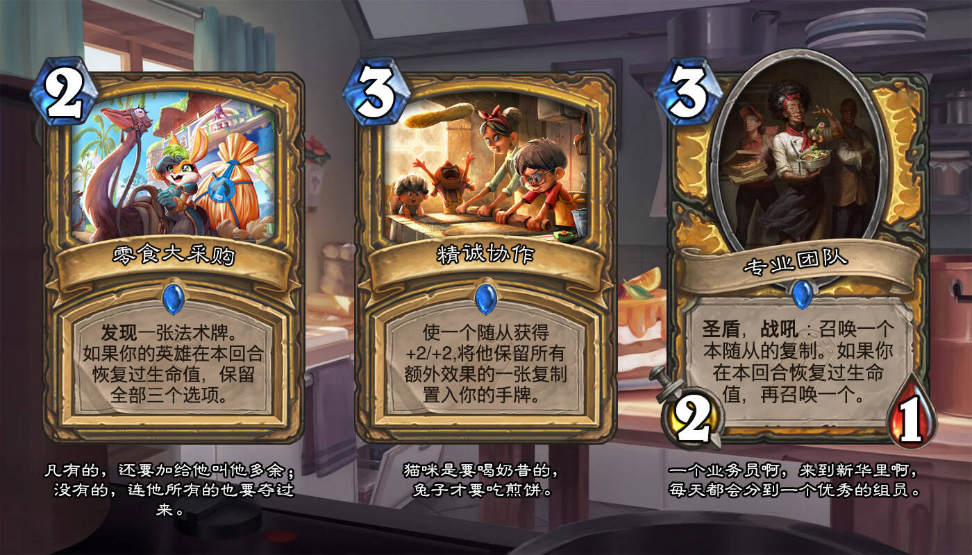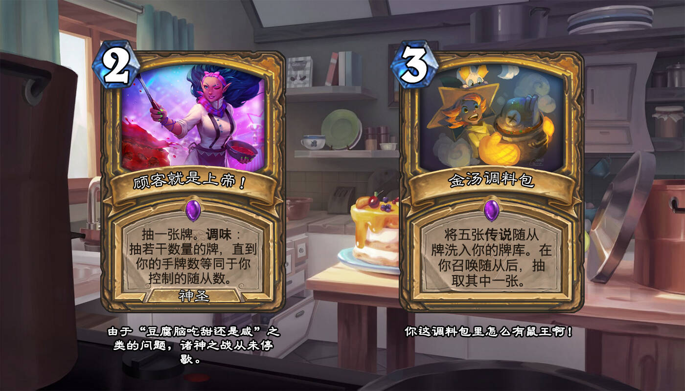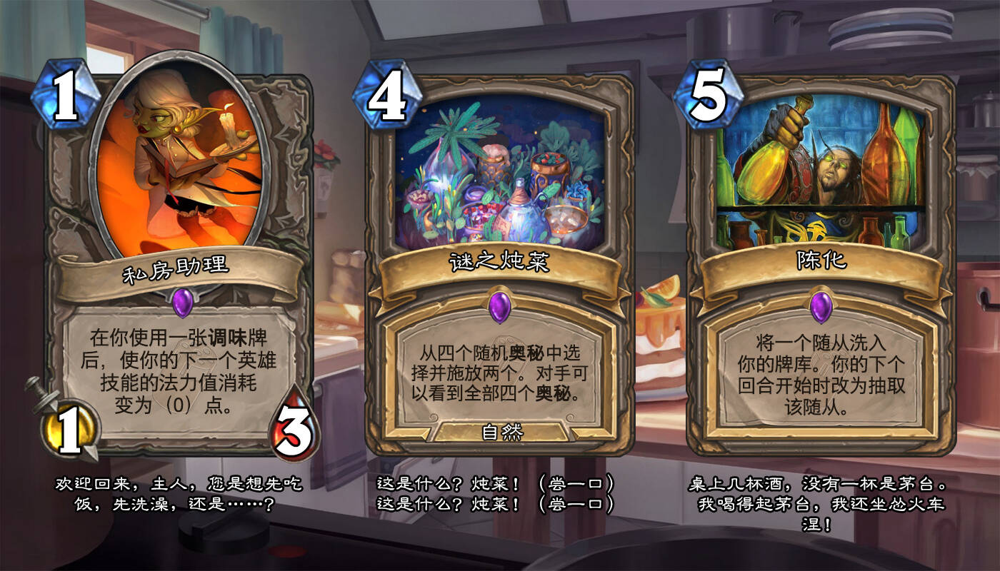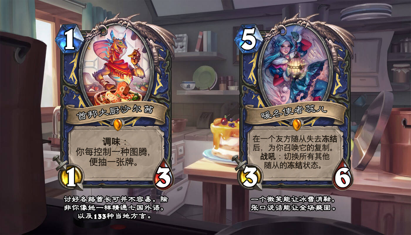 除去职业选手,来自艾泽拉斯各地各界的能人高手们也纷纷为这场美食盛会做足了准备。在他们的精心烹调下,我们将品尝到更多中立法术牌和中立地标,甚至包括一条中立的传说级任务线!