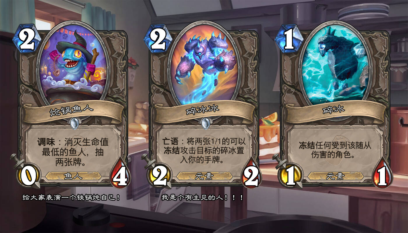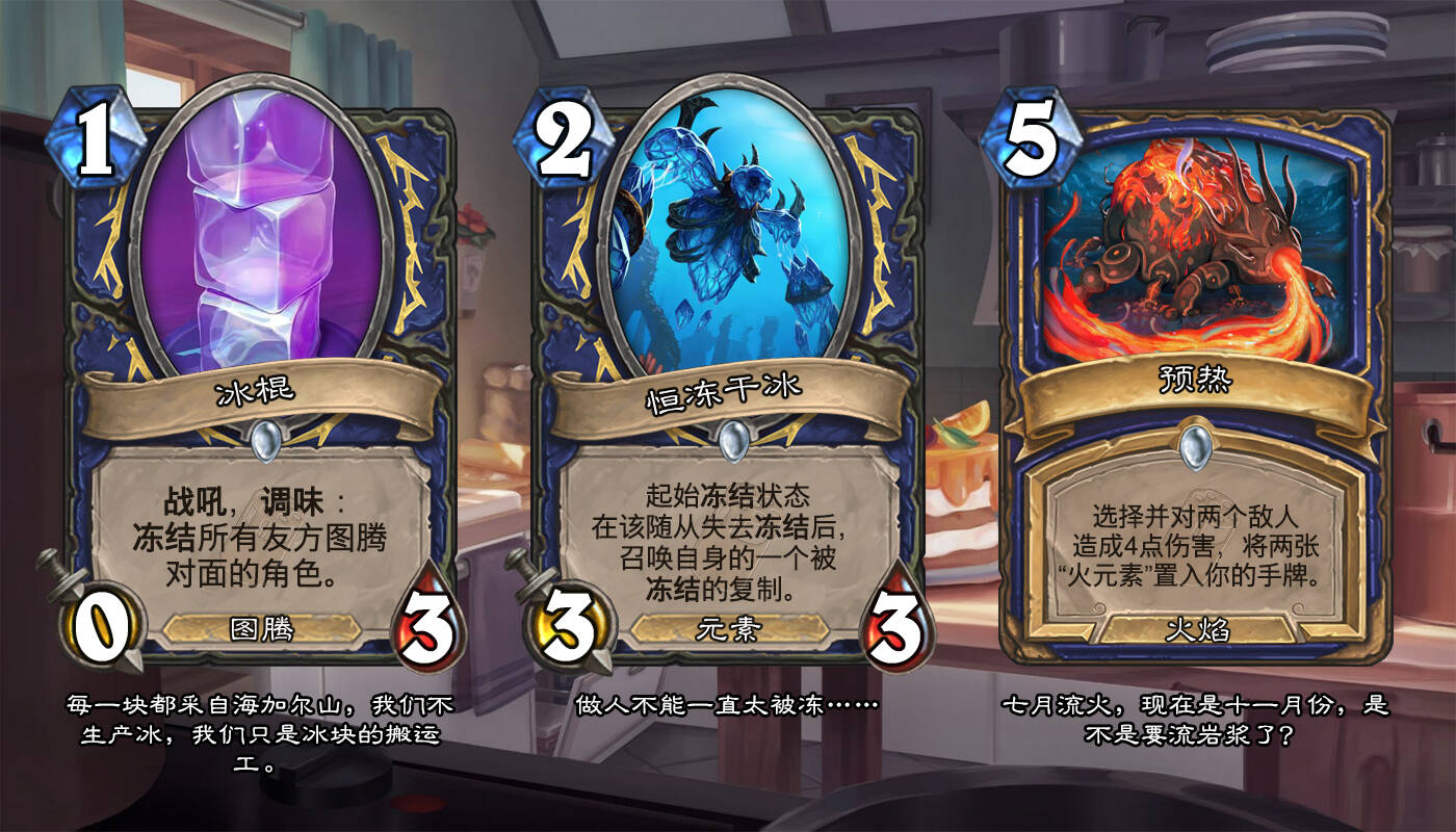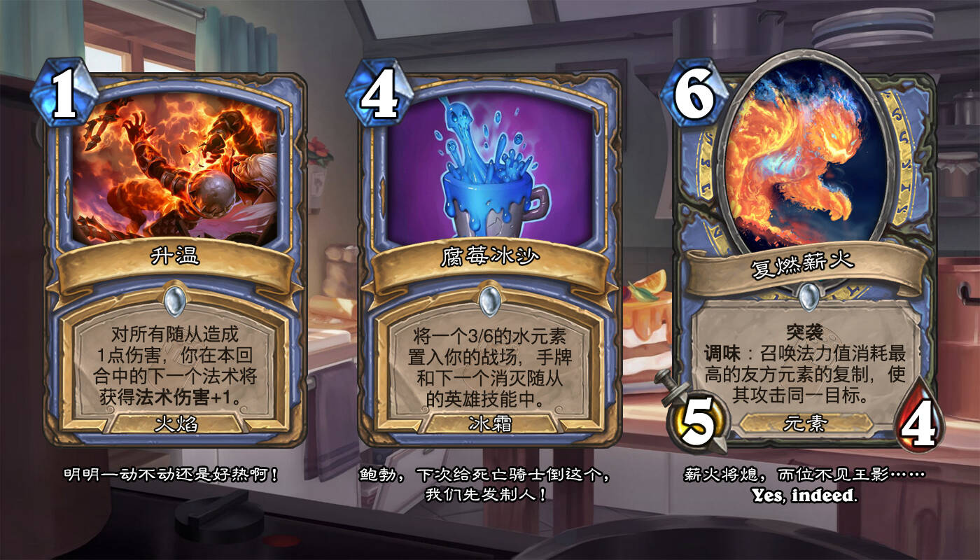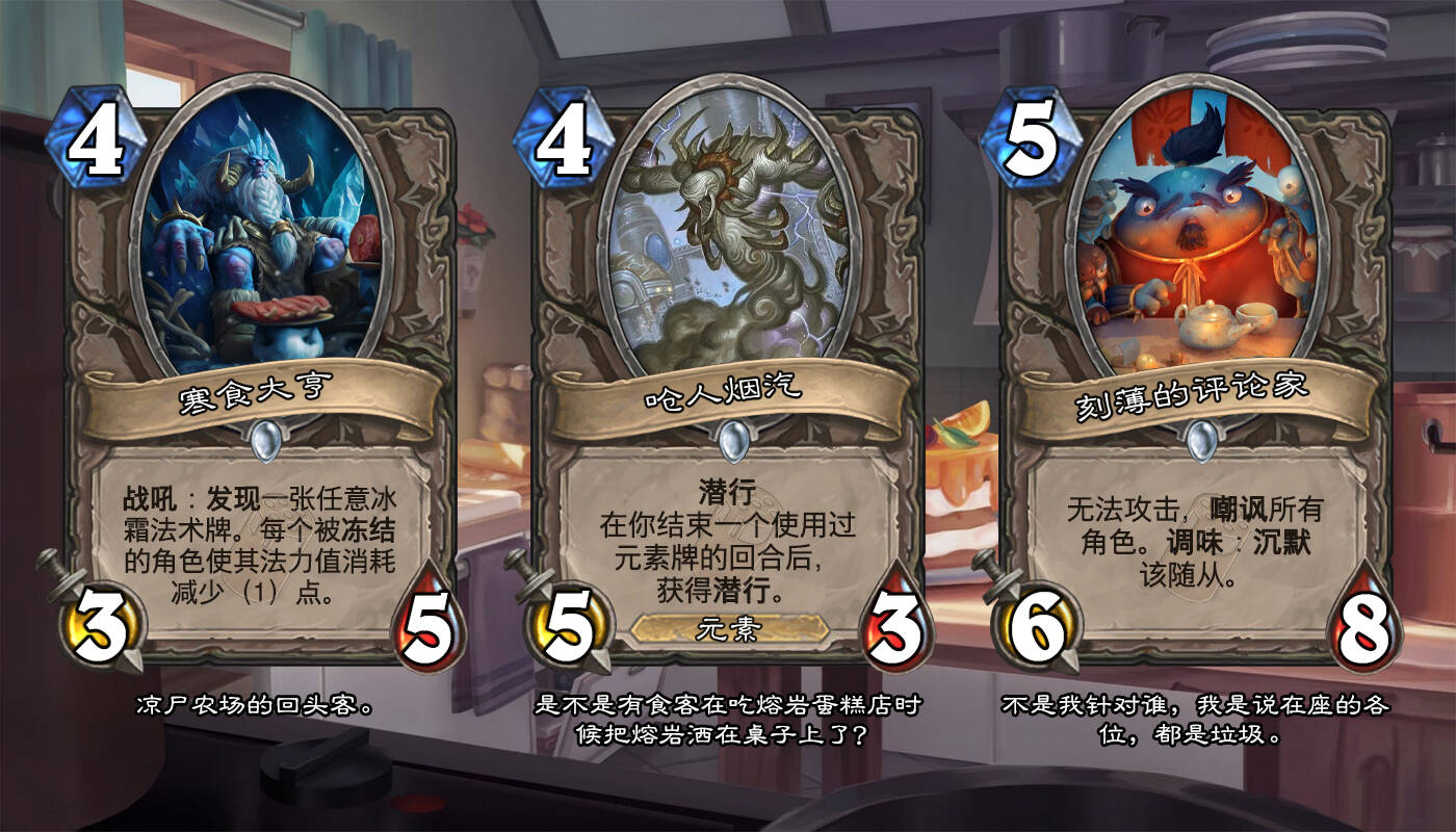 食材粉碎者弥拉的战吼效果就是依次施放这些法术,简单粗暴!