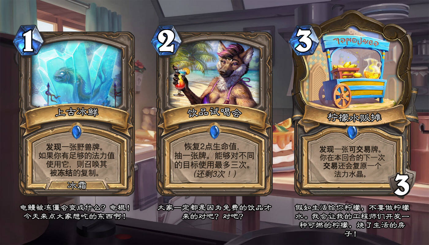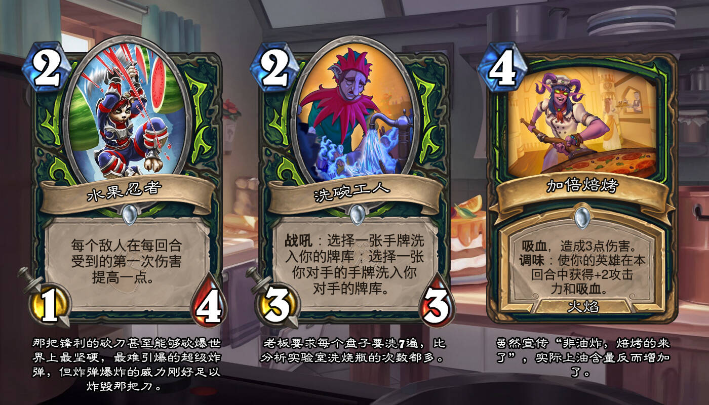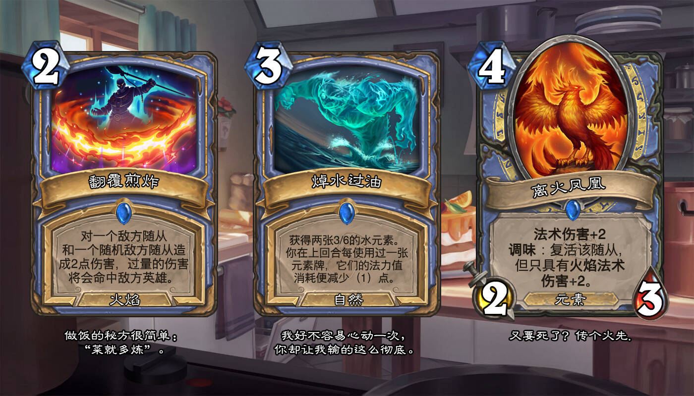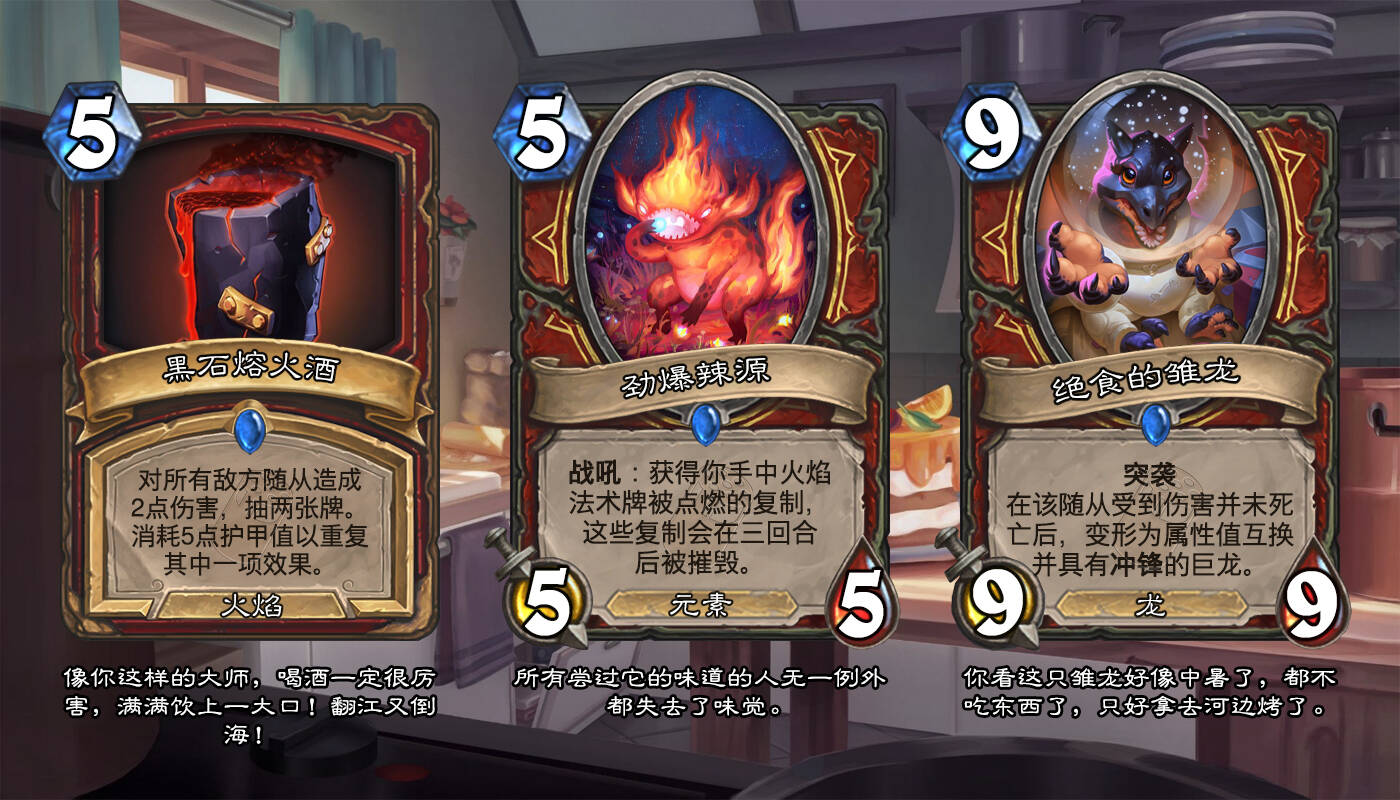 食材粉碎者弥拉的战吼效果就是依次施放这些法术,简单粗暴!