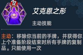 当选到神技艾克恩之形时:使用艾克恩最理想的情况是手上有4星巫毒,四星假面,几张缩小。当然实战很难达到这么理想的情况,当你发现手上有两三张假面并临近6、7回合时,就可以考虑把你的艾克恩用出来啦!