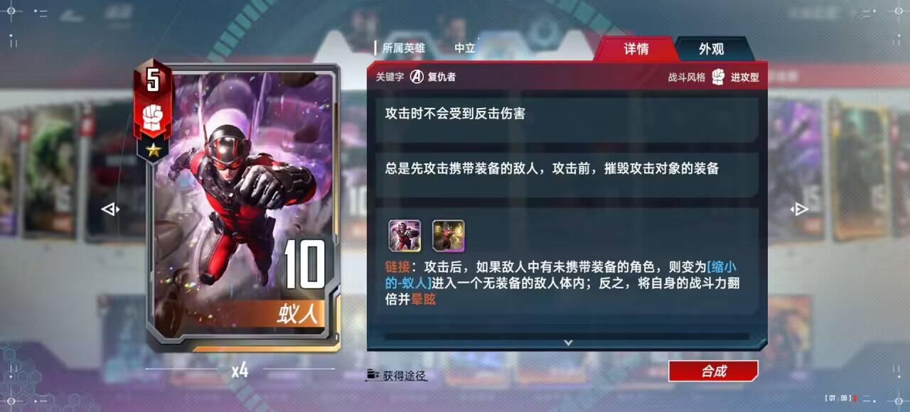 蚁人:卡组核心,带三张是为了防撕卡,一张也可。