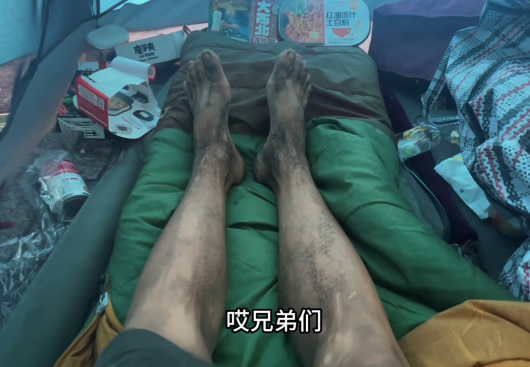 要不是瞥见这吸收日月精华的腿部,厚实的角质层能当护甲,我都觉得他是在创业,不是要饭。