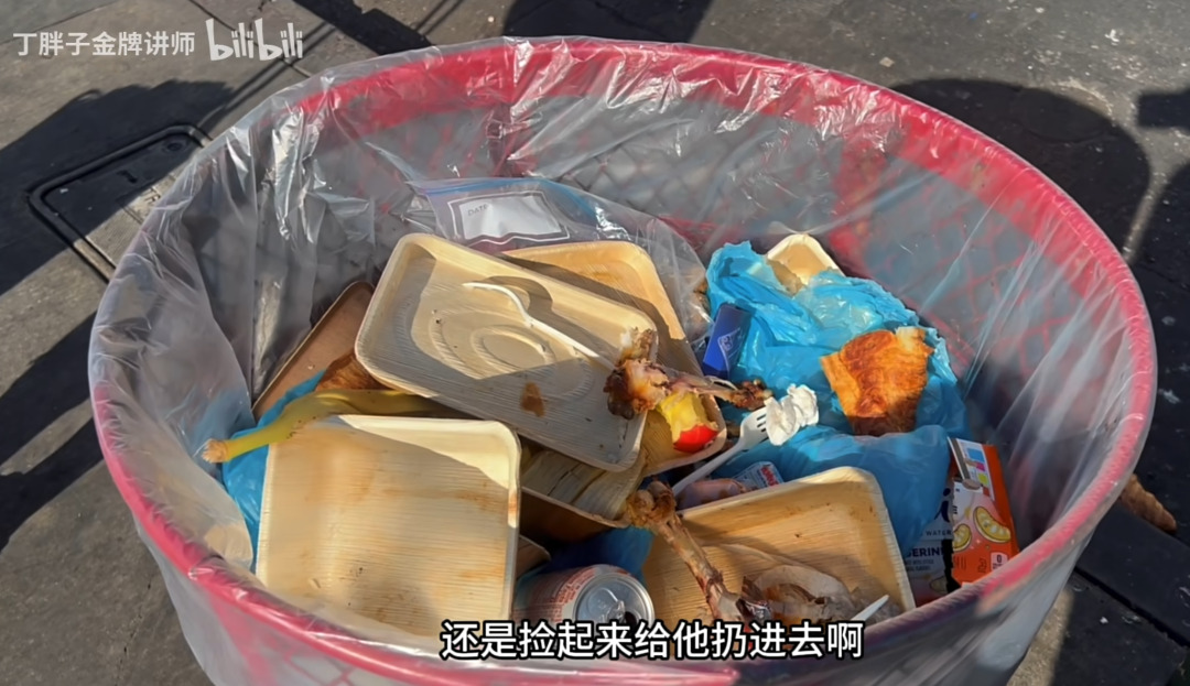 但如果你看多了他的视频,就会发现他偶尔也会把垃圾丢到桶里,顺便教育下粉丝。