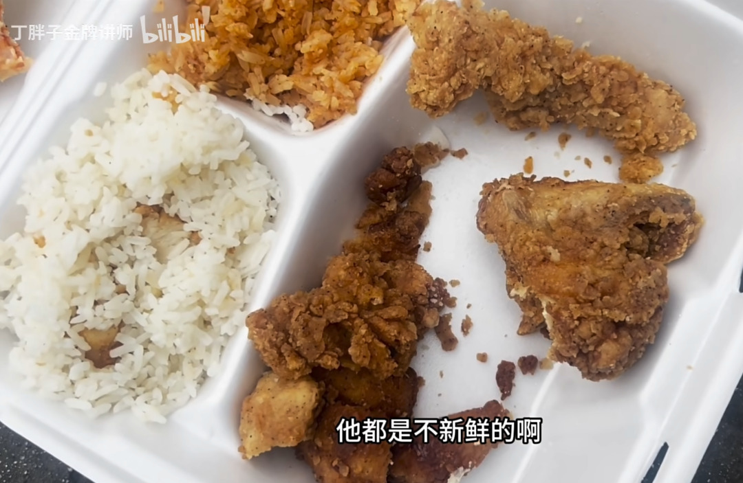米饭是梆硬的,鸡翅经常不新鲜,酱料和食材都能凝固成一团。
