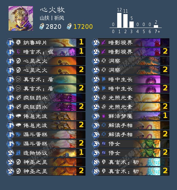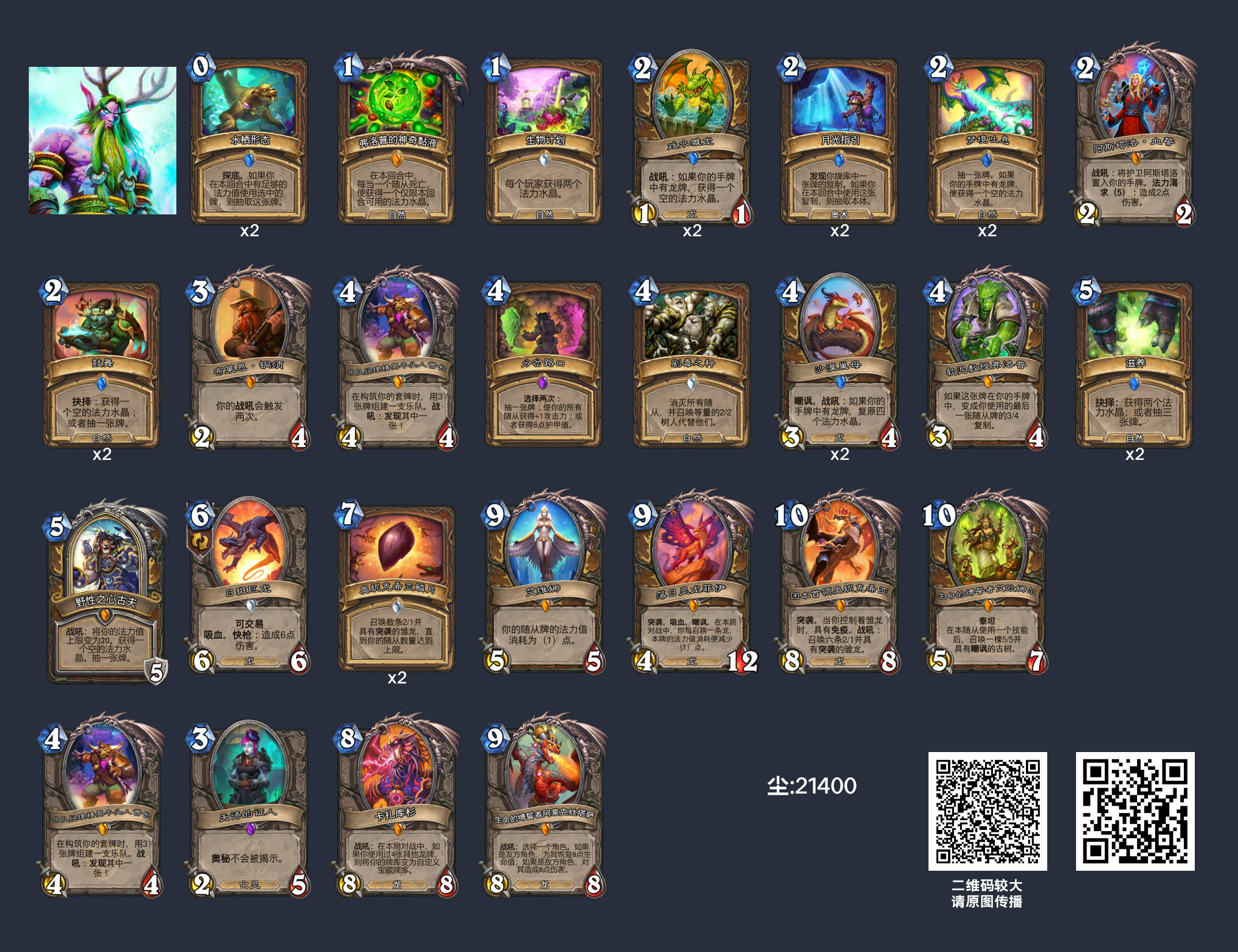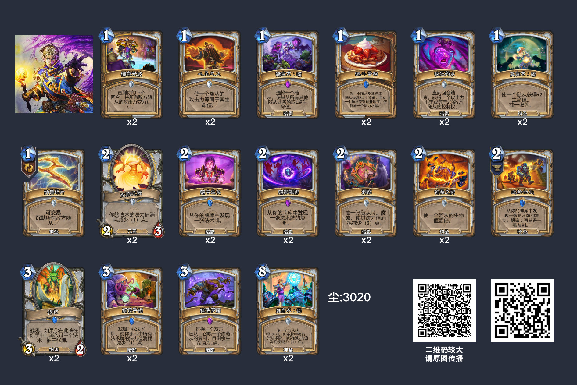 PS:目前气心的环境并不好,只能通过信息差打赢一些对局,有些有记录的对手在你下次遇到时就会留下针对对你这个形态的牌,建议配合另一套不吃相同针对牌的牧师卡组掩护使用。