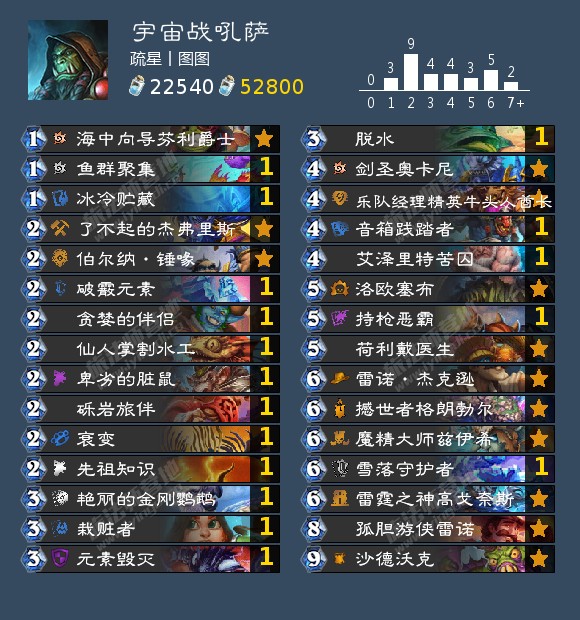 宇宙萨(小优):主打的还是一个信息差,对手无法预判我们形态的情况下无法留下正确的针对牌,前期压力等于没有,在对手有图腾或者可拉的随从情况下,可以卖哀黄找法术,尽快凑齐组件,在塞布前斩杀对手。