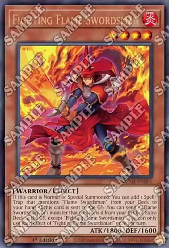 ①:这张卡召唤·特殊召唤的场合才能发动。从卡组把有「炎之剑士」的卡名记述的1张魔法·陷阱卡加入手卡。