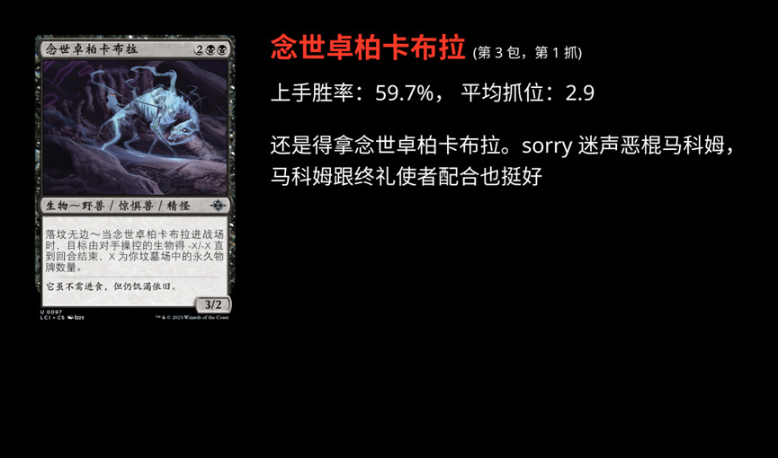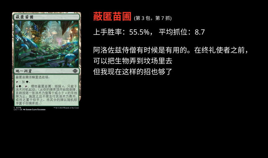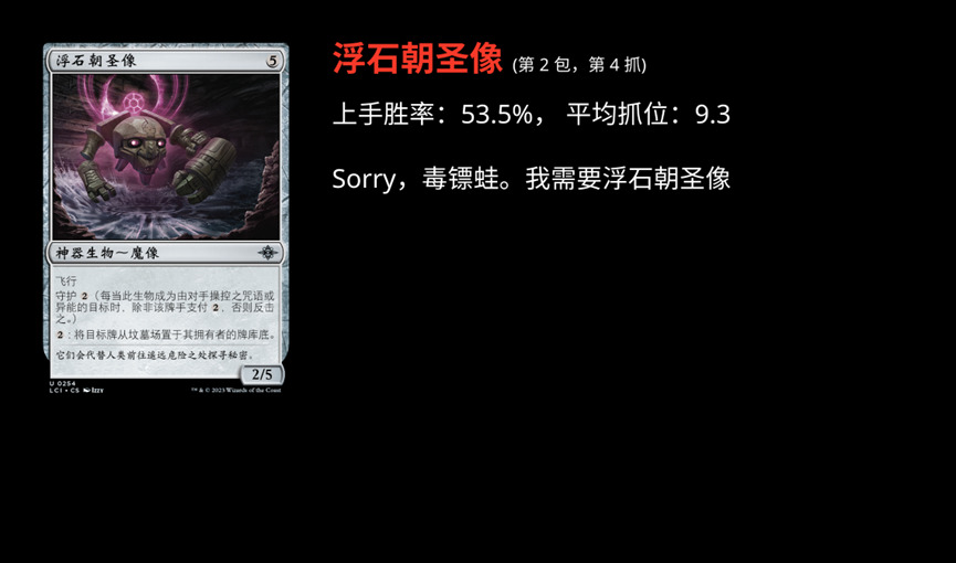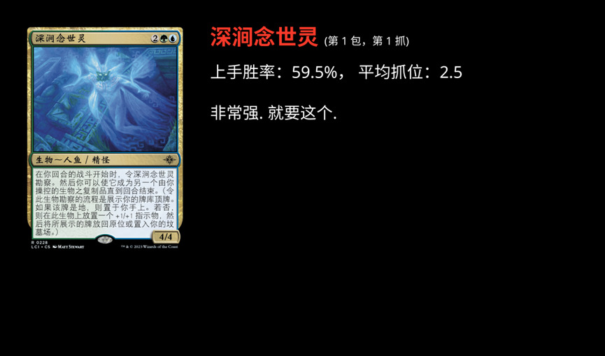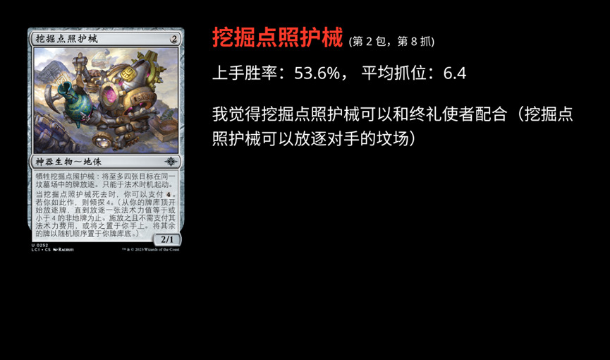 MTGA 上线 LCI 系列之后,限制环境是怎么样呢?发生着什么样的演变呢?我们尝试结合 17 Lands 的数据,以及深度挖掘和 AI 模型一点一点的挖(po)掘(jie)环境。