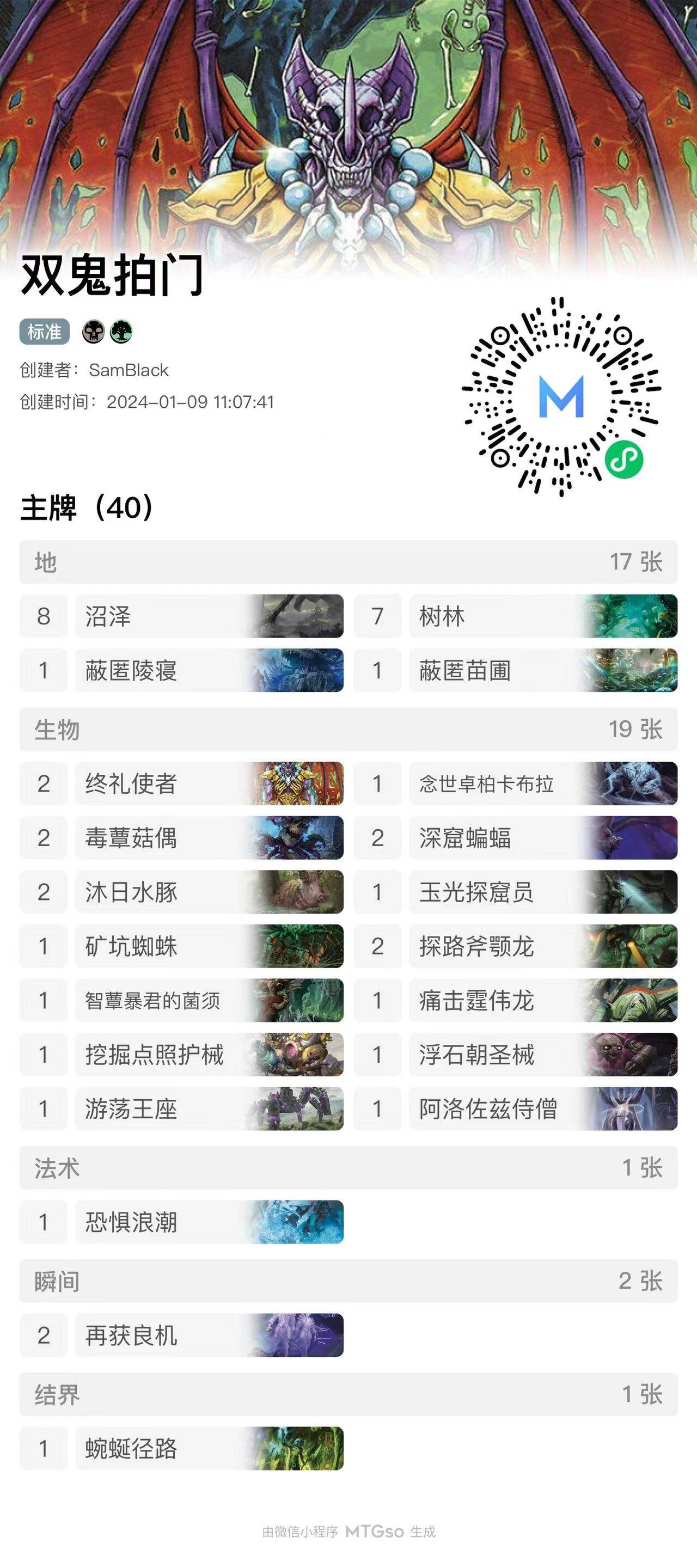 这是 Sam Black 在 1 月 3 号和 1 月 4 号打的一套七胜套牌。比赛分段是白金。