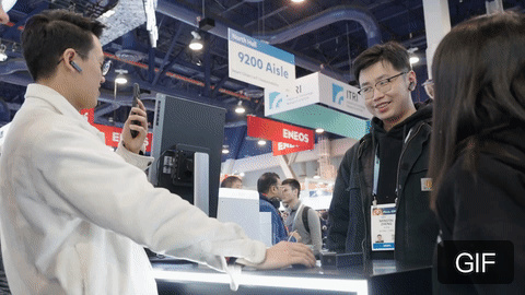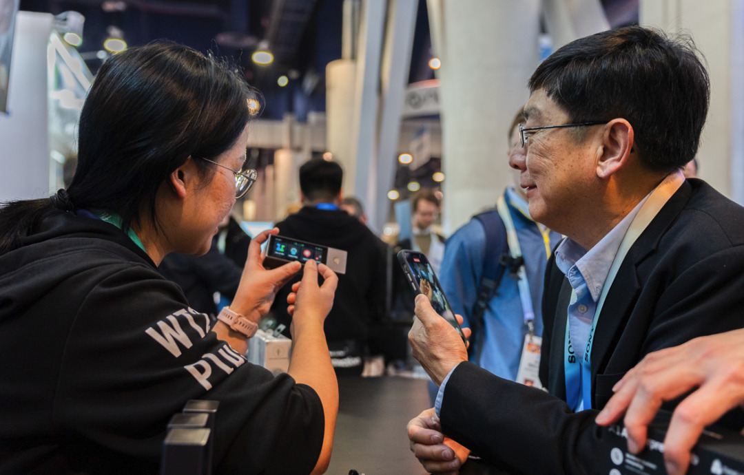 在 CES 的现场,你还可以看到这样一个场景,很多在拿着 X1 碰一碰的外国人。
