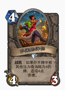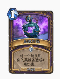 完全用来针对贼的两张单卡,共通点是可以打出4点伤害,而针对目标就是贼的天灾幻术师。术士挺难处理4血的生物,因此我选择带上这两张不太常见的卡,实战效果还不错。卡组里有足够多的4费卡来触发吵闹的伴侣,而灵魂炸弹的负面效果可通过邪弦竖琴抵消。