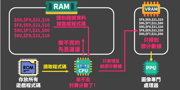 而如果此时 RAM 中生成的数据恰好是游戏结束的代码,那么游戏就会崩溃。