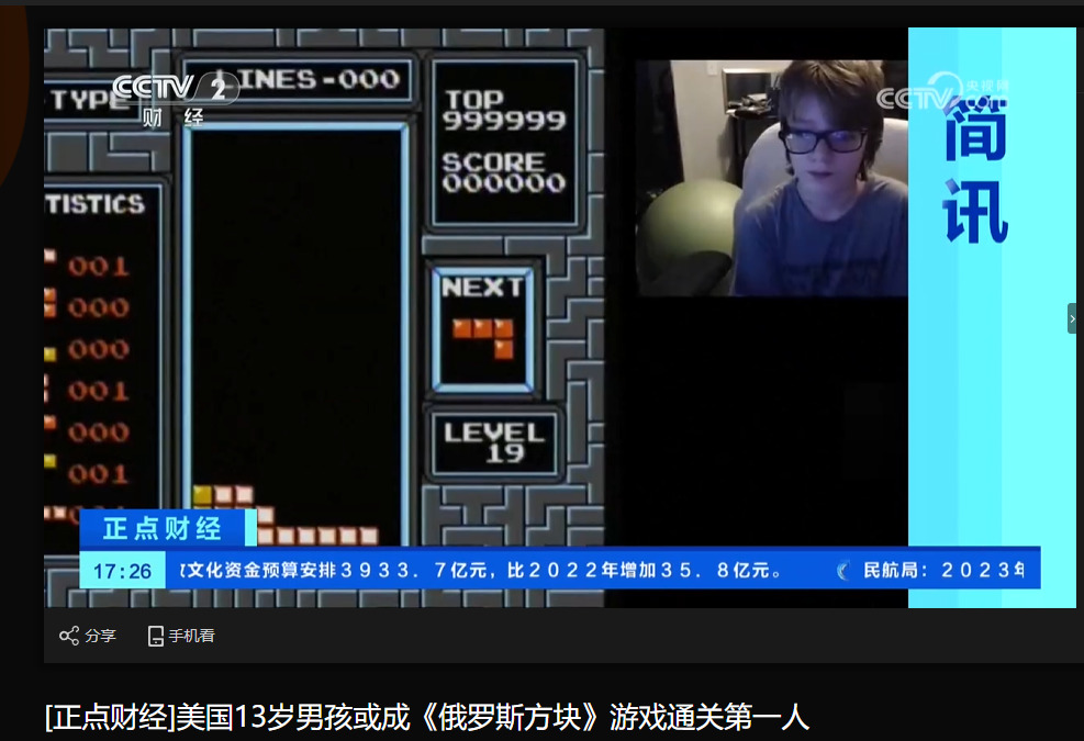 34 年,无数玩家不断的努力,汇聚在了这个叫 Blue Scuti 的 13 岁孩子身上,他带着所有人的力量,冲破了这个叫做《 俄罗斯方块 》的世界。