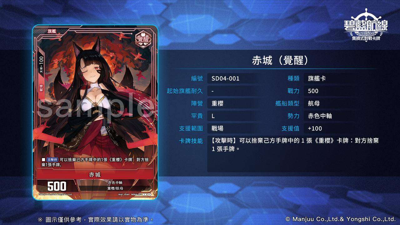 本款预组的旗舰卡为重樱阵营的代表角色之一 ——“赤城”