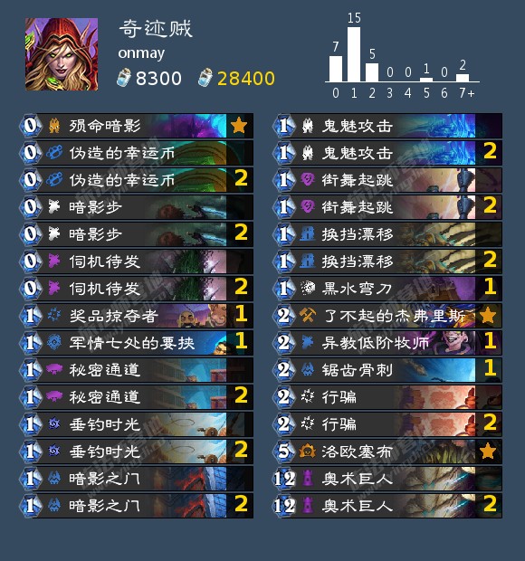 来自onmay的奇迹贼,他使用这套卡组打到美服第3名。