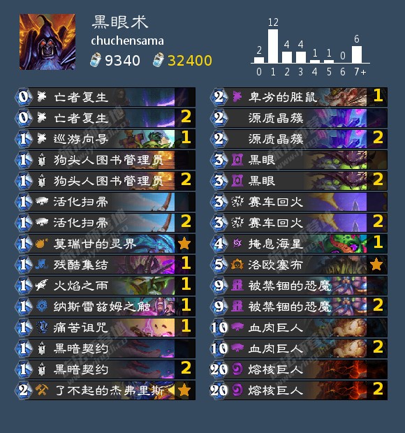 来自chuchensama的黑眼术,他使用这套卡组打到前十(也有可能就是在前十划水)。