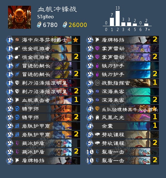 来自STgReo的血帆冲锋战,他使用这套卡组盘踞在美服前五,上个月他就在研究这套卡组,我和他打过很多次,很稳,大家可以放心抄。