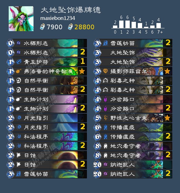 来自maxiebon1234的坠饰爆牌德,他使用这套卡组在美服前百划水。