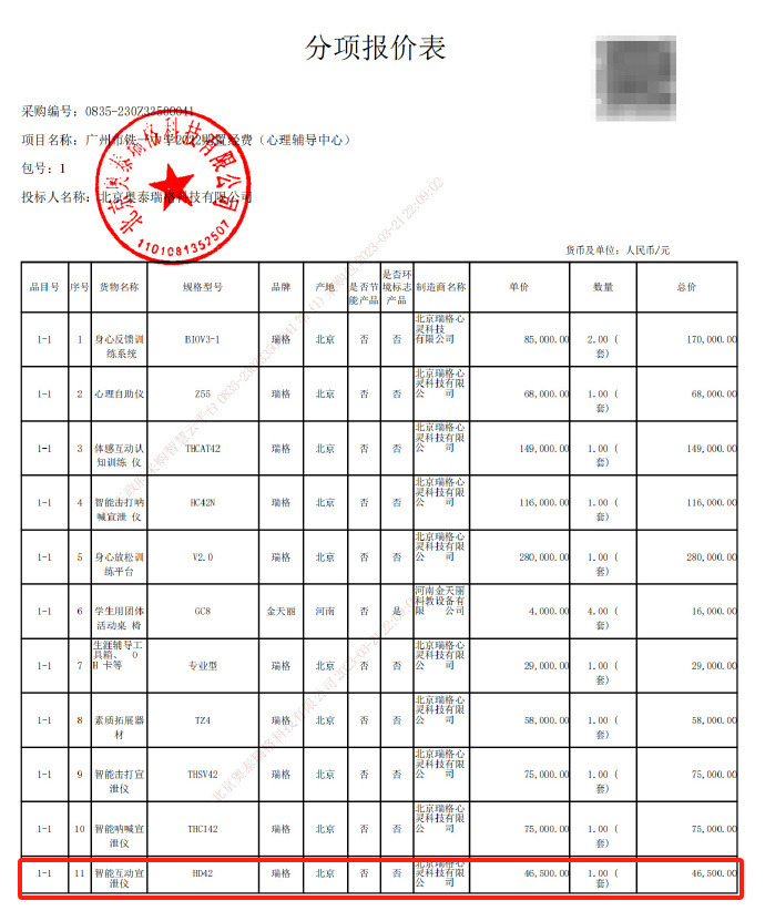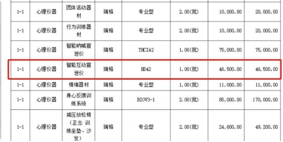 根据互联网上被爆出来的该学校的采购清单上,可以发现这所中学在瑞格这家公司买了不少心理仪器,每样都价格不菲。