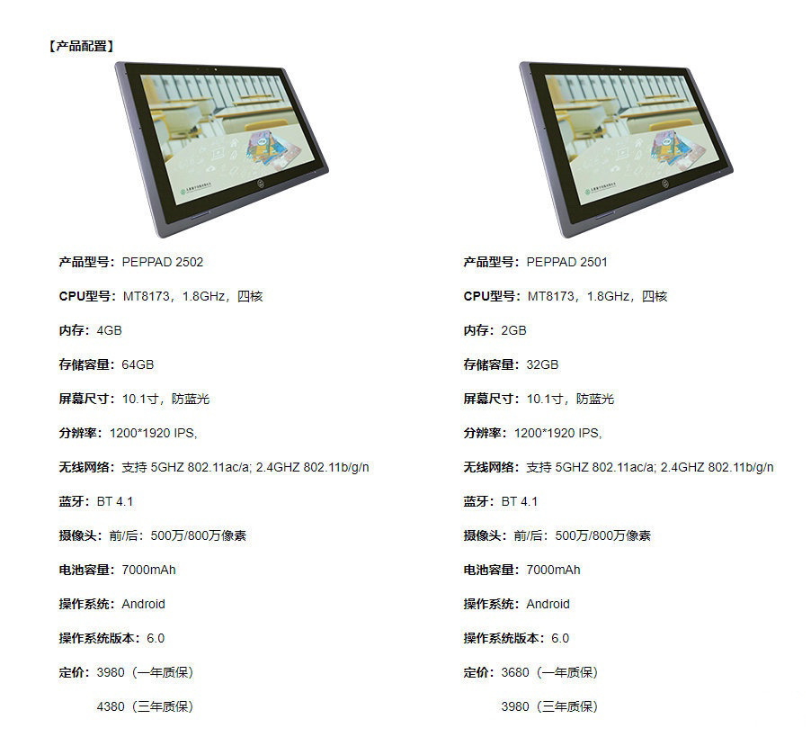 两年前,人教社曾推出一款学习平板,配置和价格如下: