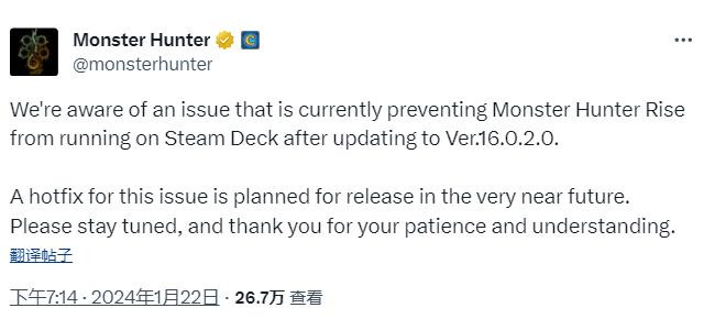 根据外媒TheGamer的测试,《怪物猎人:崛起》在Steam Deck上甚至无法进入标题界面,因为Steam Deck直接拒绝启动游戏。随后《怪物猎人》官方X(推特)也发文确定了这个问题,但并未提及Enigma加密,卡普空表示将针对此问题发布更新补丁,具体上线时间待定。