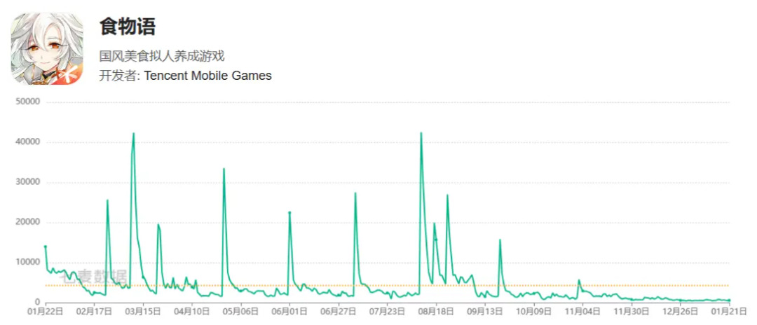 根据七麦数据预估,《食物语》自去年8月达到营收峰值后就不断走低,目前iOS端单日收入可能已不足1000美元。据玩家推测这是《食物语》在故意压低流水以为关服做准备的前兆。