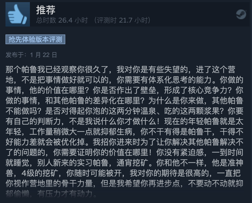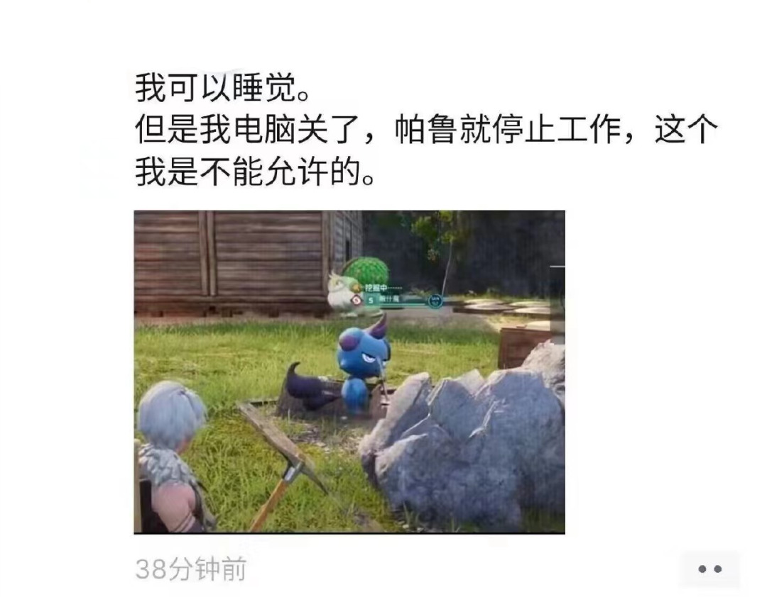 其他玩家表示人道谴责,顺便给自己的帕鲁也普及了这种 “ 狼性文化 ” ,让它们手里有活眼里有光。