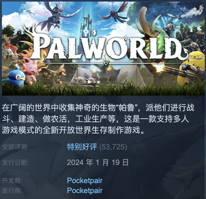 那么问题来了,幻兽帕鲁它到底有什么魔力,在游戏圈干出这种惊天动地的大事呢?