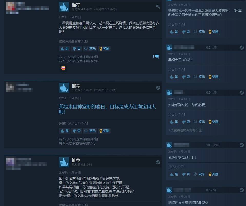 给出好评的玩家认为《如龙8》剧情节奏良好,甜蜜温馨。情怀拉满,全面升级;游戏性很棒。战斗系统和画面都很棒。优化方面真不错!