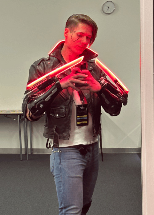 近日,国外硬核Coser Zibartas 完成了自己打造的《赛博朋克2077》义体螳螂刀,并在线下公共场所进行了展示。
