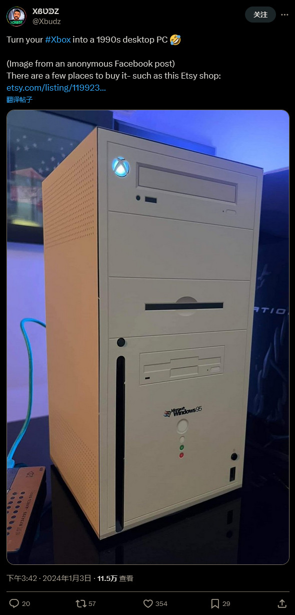 最近有一位粉丝为自己的 Xbox Series X 制作了一个外壳,使其开起来像是一台运行 Windows 95 的 90 年代米色台式电脑。这种复古感在玩家间很受欢迎,也吸引了 Blackley 的注意。