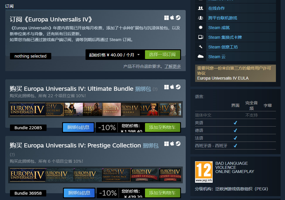 作为“P社四萌”之一的《欧陆风云4》,自2013年发行以来,已经为本体游戏推出了大量DLC,而官方为了方便玩家体验这些内容,贴心的在2021年推出了整合大量DLC的包月订阅服务。