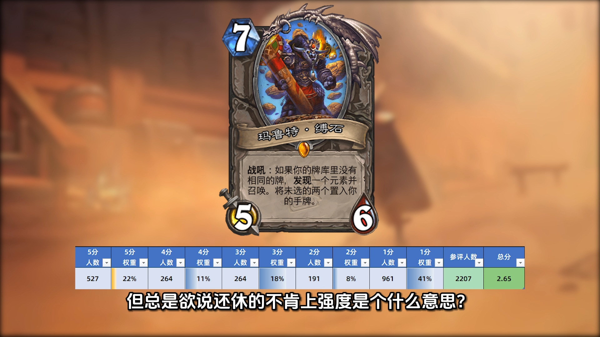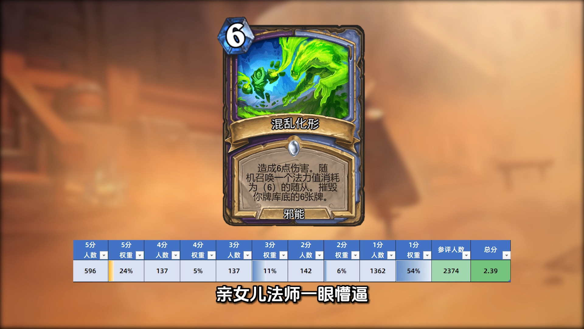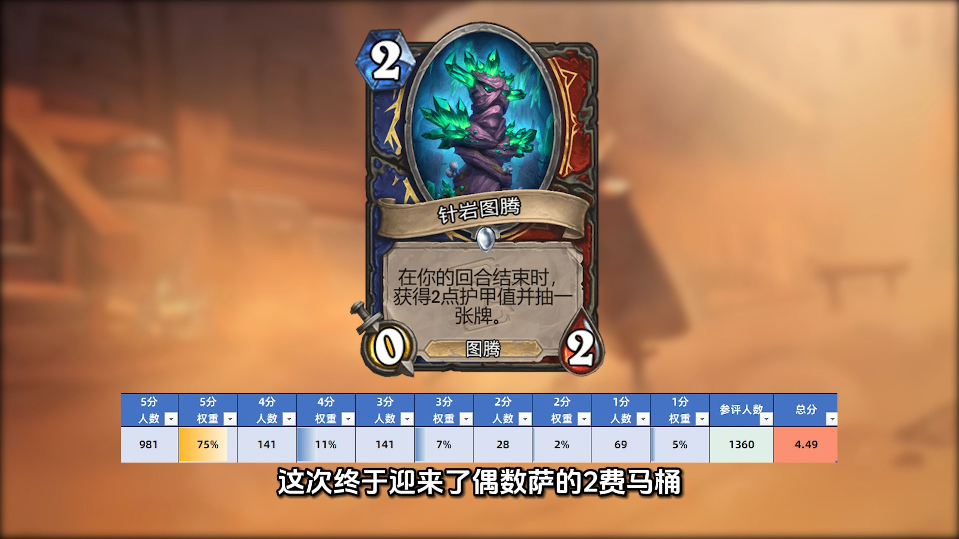 作为萨满双职业卡的保留节目,这次终于迎来了偶数萨的2费马桶,还有彦祖脑补了其他职业联动效果,75%的玩家给出5分,综合评分4.49