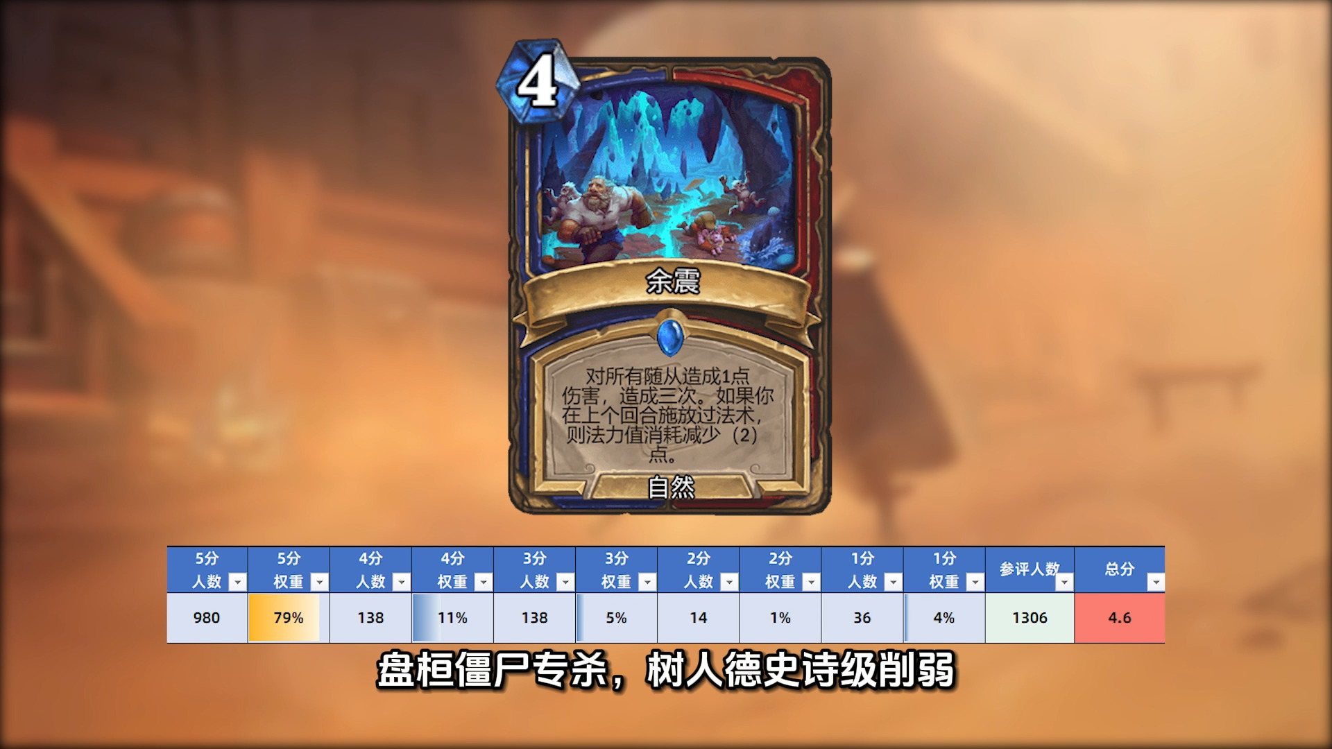 盘桓僵尸专杀,树人德史诗级削弱,既然法师的4费打3叫火热促销,那这张卡不如就叫…低价甩卖吧!综合评分4.6
