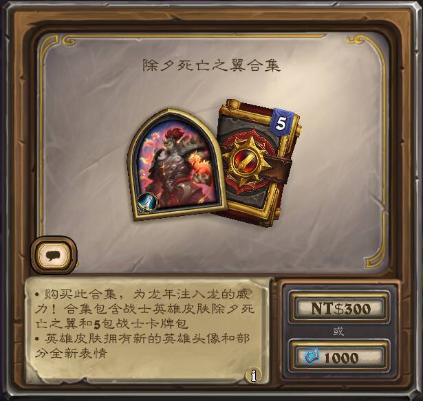 含构筑模式战士新皮肤“除夕死亡之翼”和5战士包,售价1000符文石。