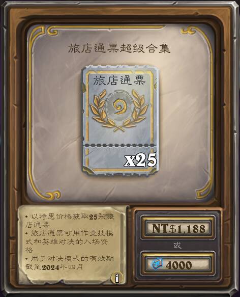含竞技场(和对决)25张旅店通票,售价4000符文石。