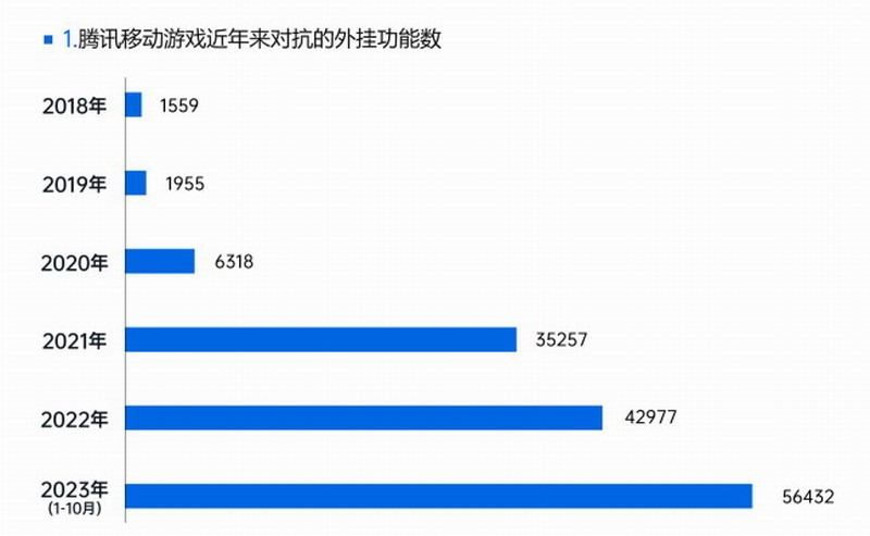 其中显示,2023年1-10月腾讯PC游戏外挂保持着高位激烈对抗态势,外挂样本数量按月均值达到3393款同比2022年月均值2278款增长49%。