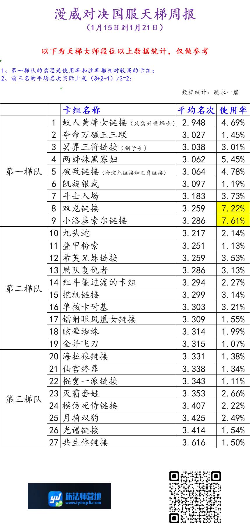本周周报数据仅做参考,本文不做任何卡组推荐、合成: