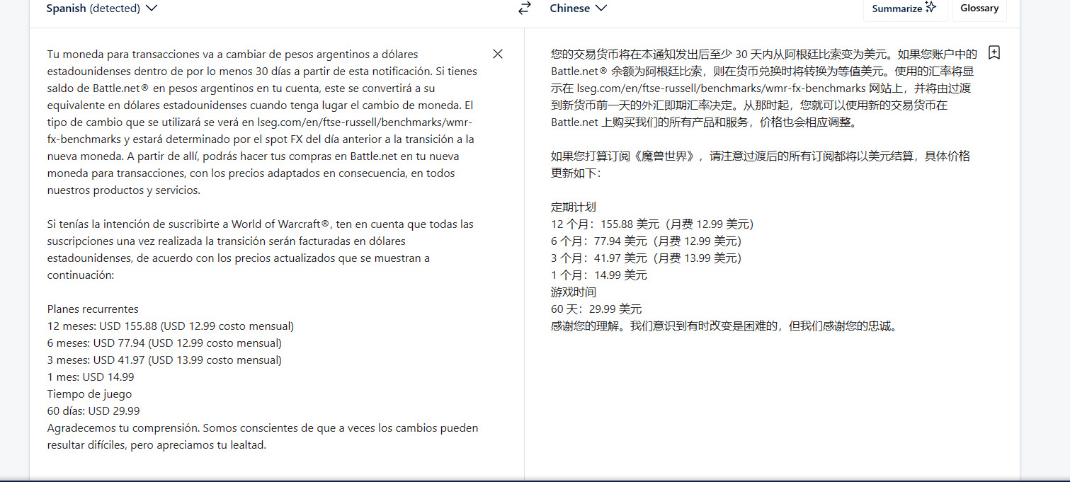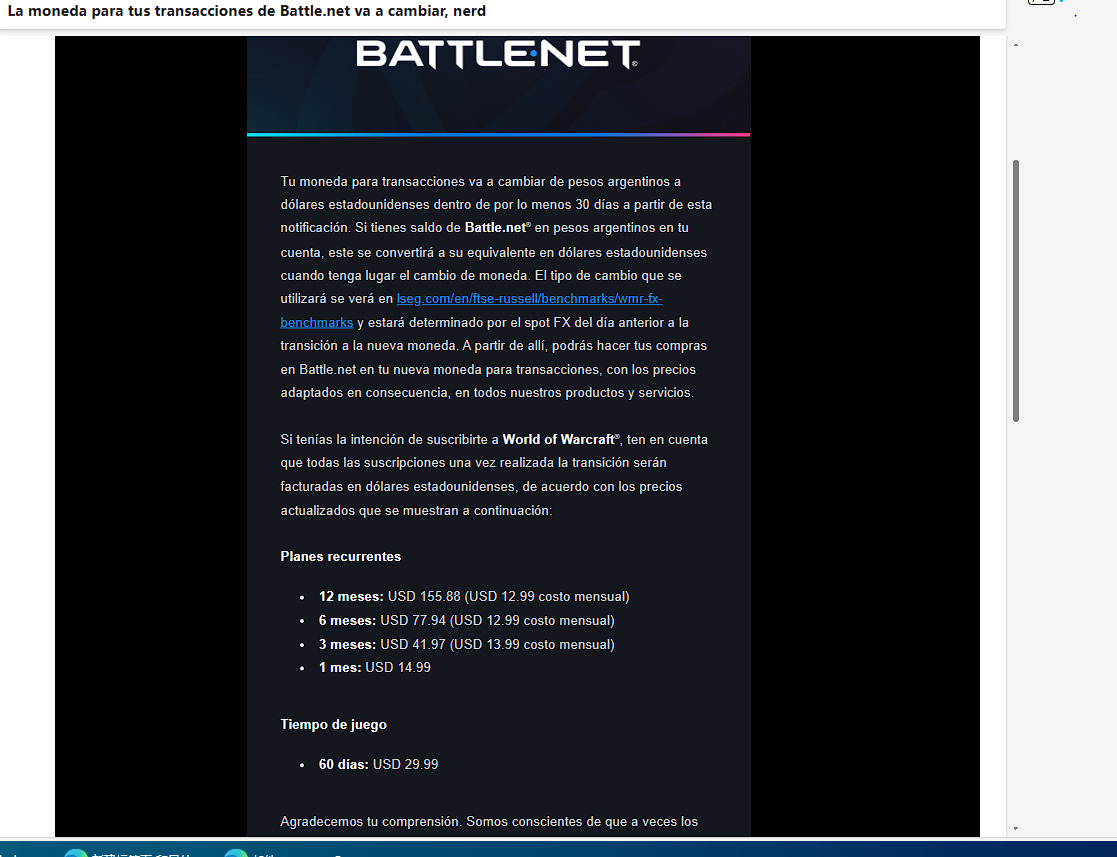 各位阿根廷人,检查下邮箱,就在刚刚多人收到暴雪邮件,一个月后阿根廷区的货币将转换成美元,账户上的余额也会按照汇率转换成美元,这意味着一个月后8000符文石售价高达80美元!继steam阿根廷覆灭后,战网阿根廷也将一去不返,没想到普天之大竟无一处可收留我们这些云阿根廷人。