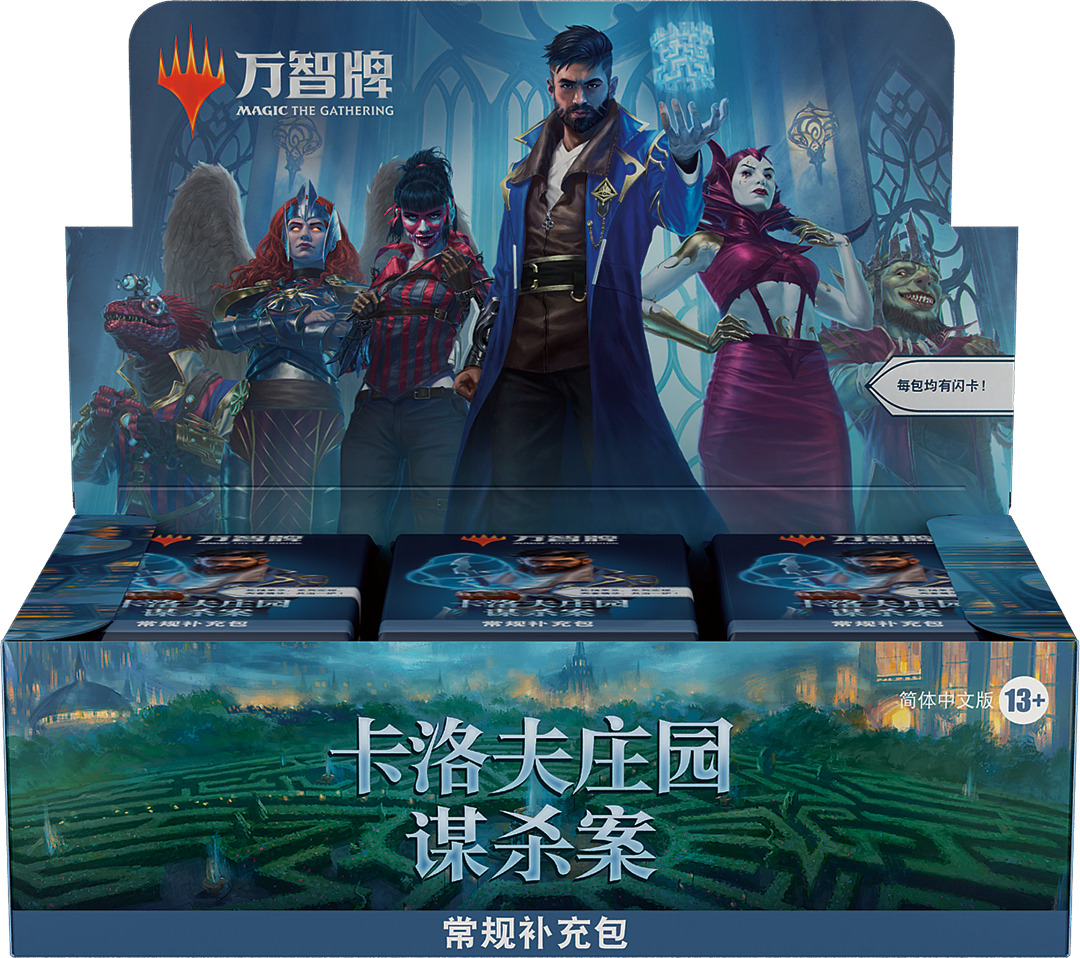 卡洛夫庄园谋杀案套装比起之前的套装(如依夏兰迷窟套装)作出了一些变化,更加适合开始或充实你的万智牌收藏。卡洛夫庄园谋杀案套装内含9包补充包(卡洛夫庄园谋杀案常规补充包),比以前的8包多了1包。和好友带上自己的补充包一起玩时,卡洛夫庄园谋杀案套装内含足够三次轮抽赛或一场现开赛加一场轮抽赛使用的常规补充包。(有关参加卡洛夫庄园谋杀案赛事的详情,请咨询你当地的游戏店。)
