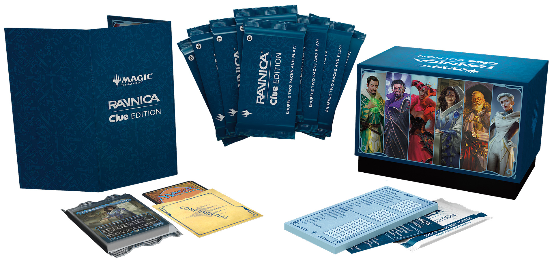 Ravnica: Clue Edition(Ravnica: Cluedo Edition)补充包中新加入万智牌的稀有和非普通牌、重印牌和基本地,以及Clue补充包中的6种无边框传奇生物和19张地牌都无法在卡洛夫庄园谋杀案产品(包括常规补充包和聚珍补充包)中找到。我们会在近日公布Ravnica: Clue Edition(Ravnica: Cluedo Edition)补充包内容的完整内容。