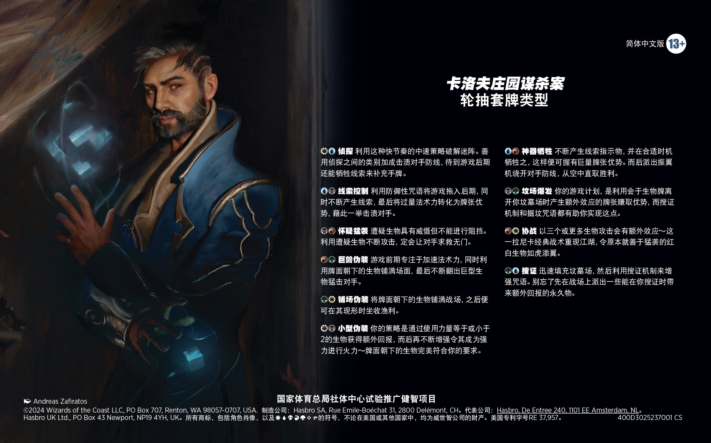 请注意,我们更新了卡洛夫庄园谋杀案常规补充包中轮抽套牌类型简介,提升了其准确性。下图为最新版本: