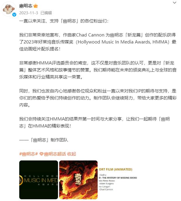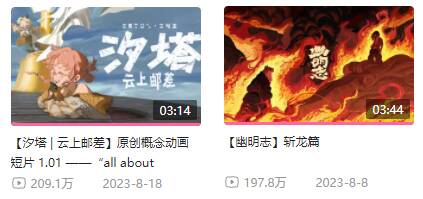 这两个项目在登记了作品著作权之前便放出了同名的动画短片,至今在哔哩哔哩上均获得200万左右的播放量。